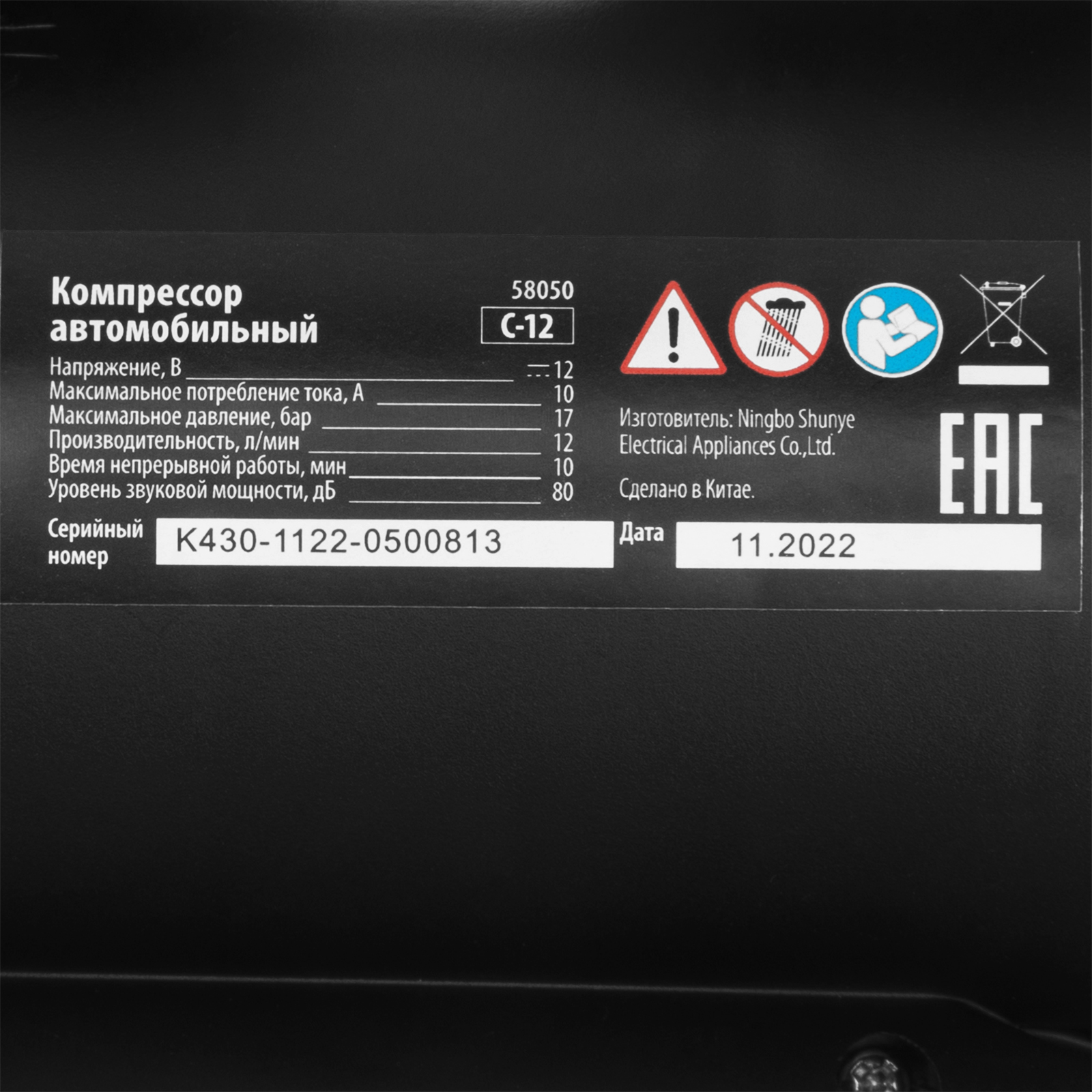 Компрессор автомобильный С-12, 12 В, 17 атм, 12 л/мин Sparta в Челябинске