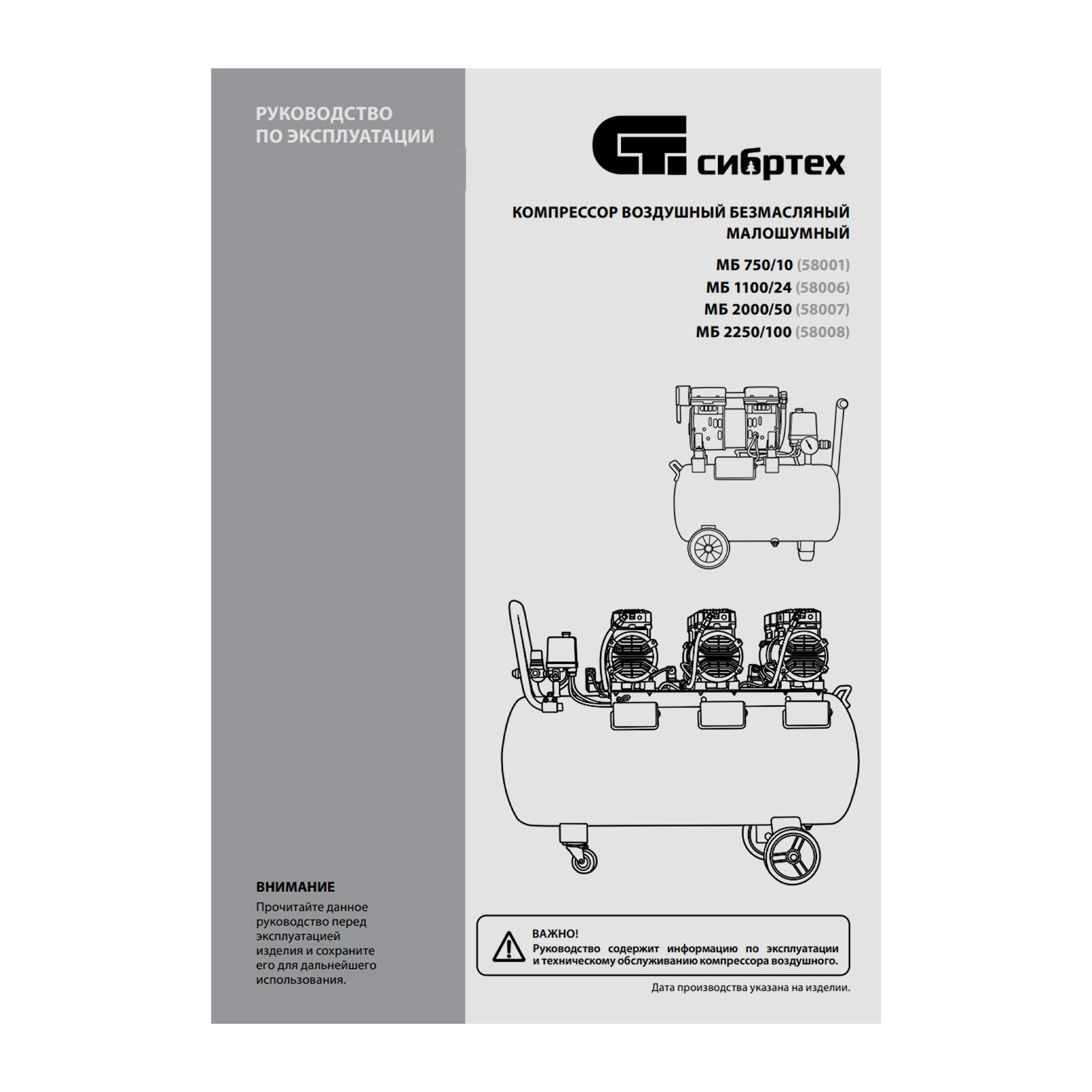 Компрессор безмаслянный малошумный МБ 1100/24,1100 Вт, 24 л, 170 л/мин Сибртех в Челябинске