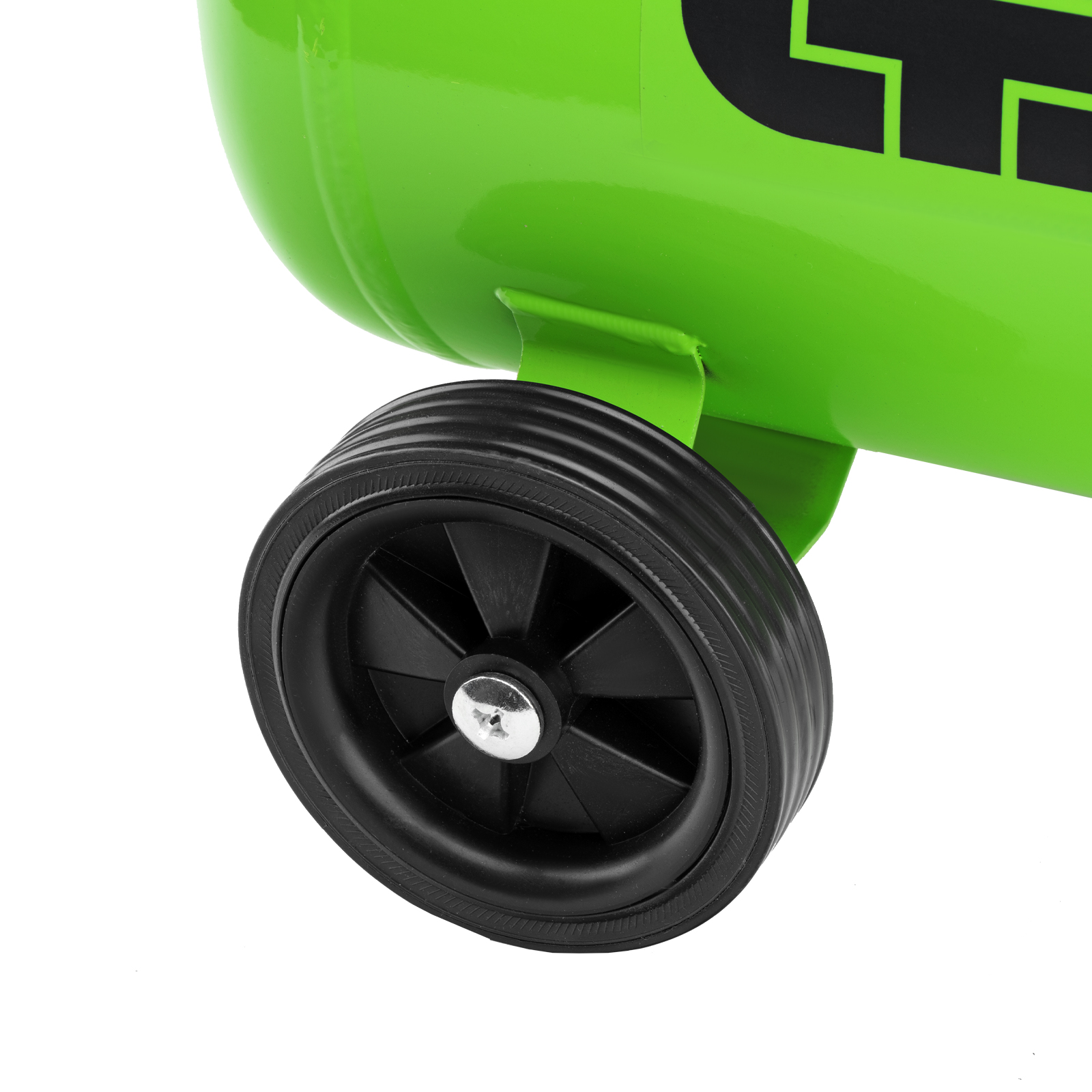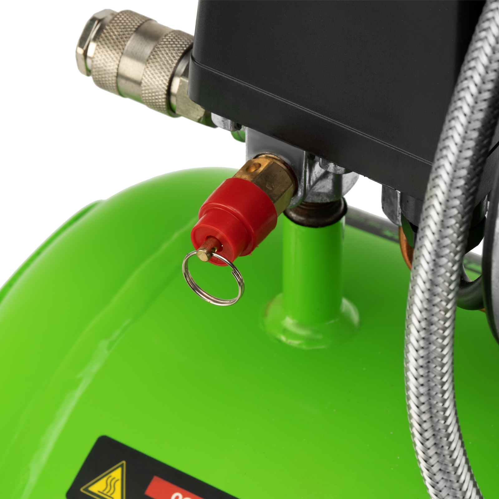- Контроль рабочих параметров — компрессор оборудован механическим манометром для отслеживания давления.