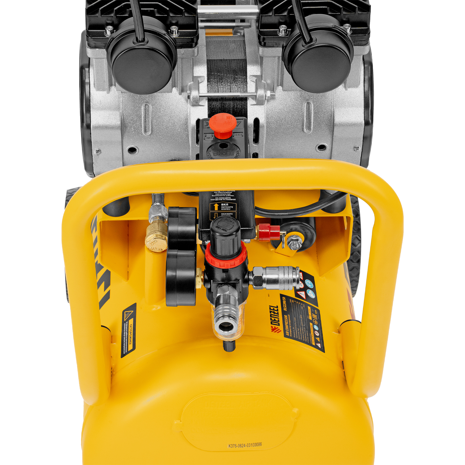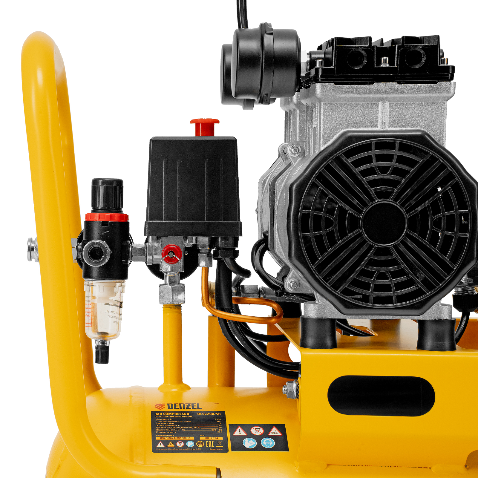 Компрессор безмасляный, малошумный DLS 2200/50, 2200 Вт, 2x1100, 50 л, 380 л/мин Denzel в Челябинске