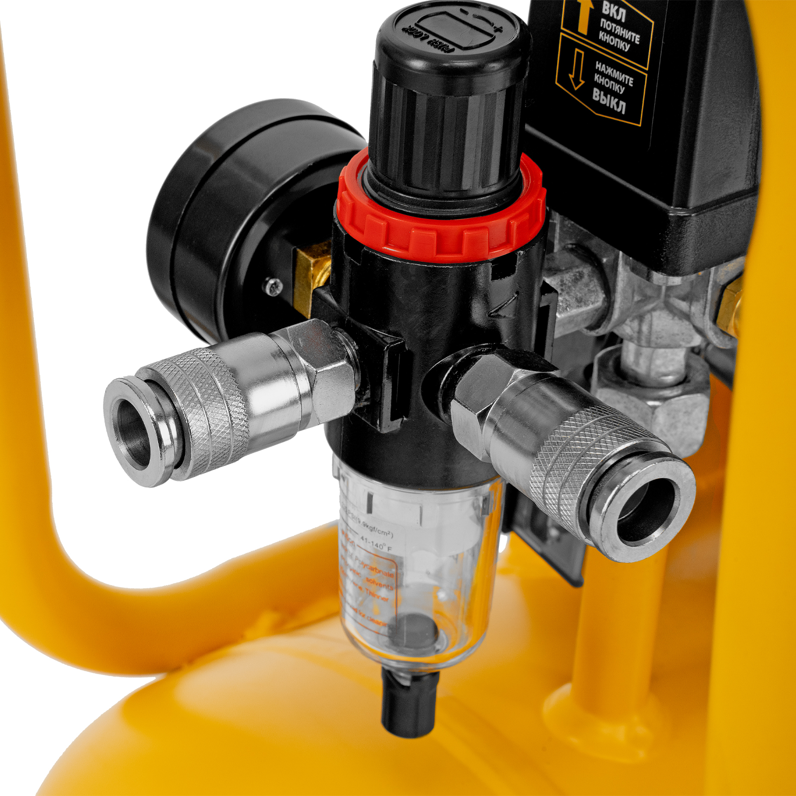 - Высокое качество очистки воздуха — фильтры надежно задерживают посторонние частицы, а влагоотделитель препятствует попаданию конденсата в пневмомагистраль.