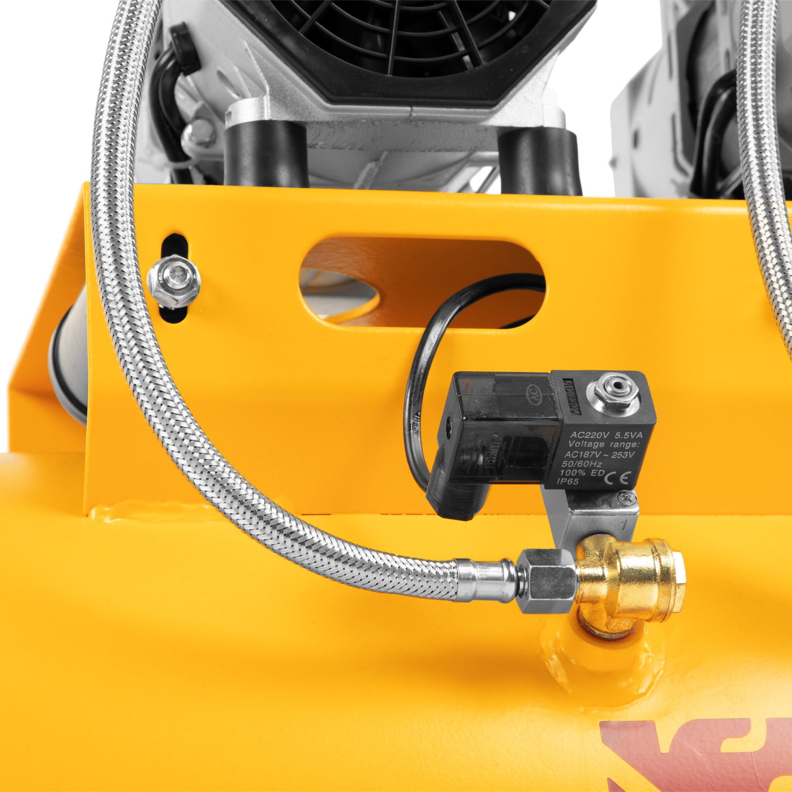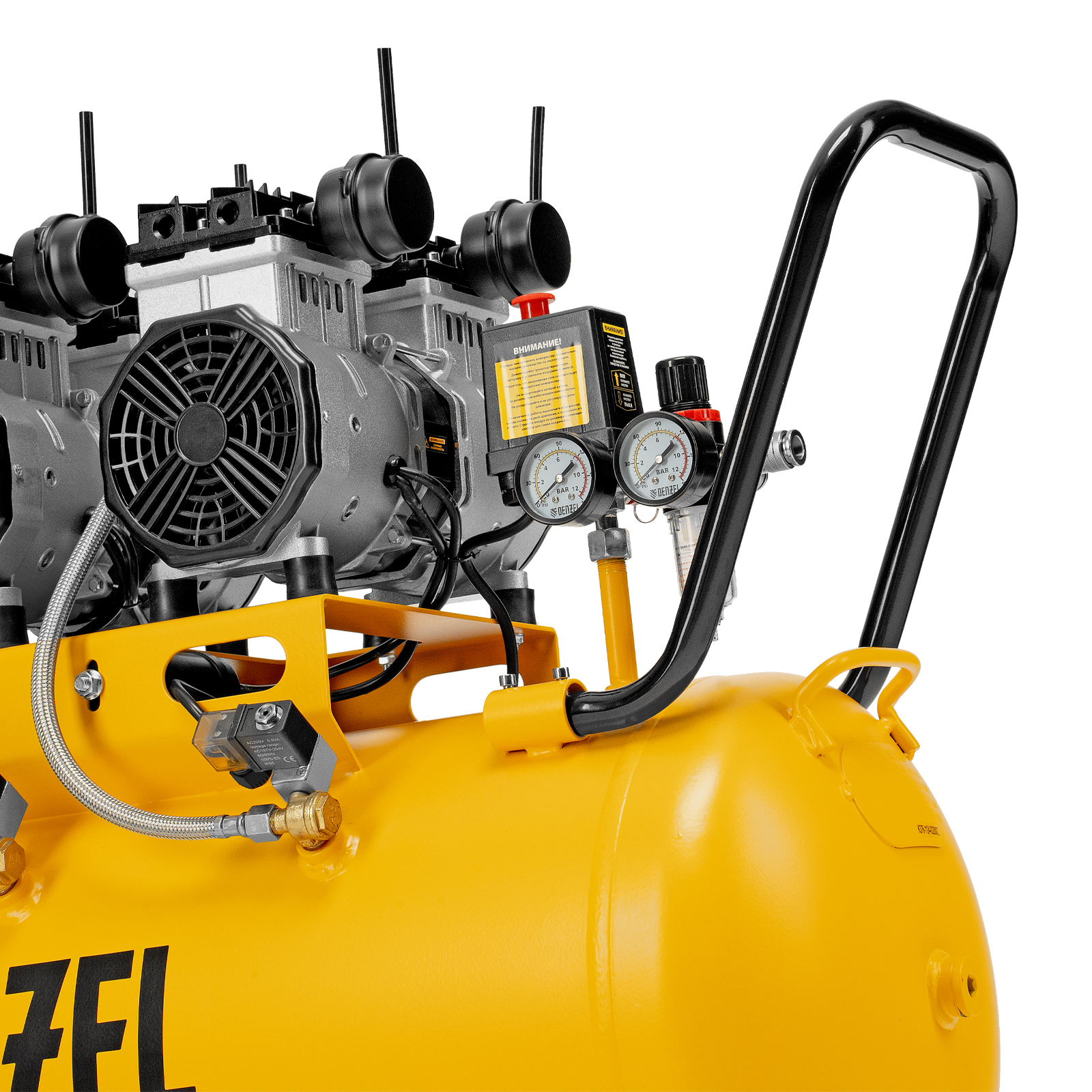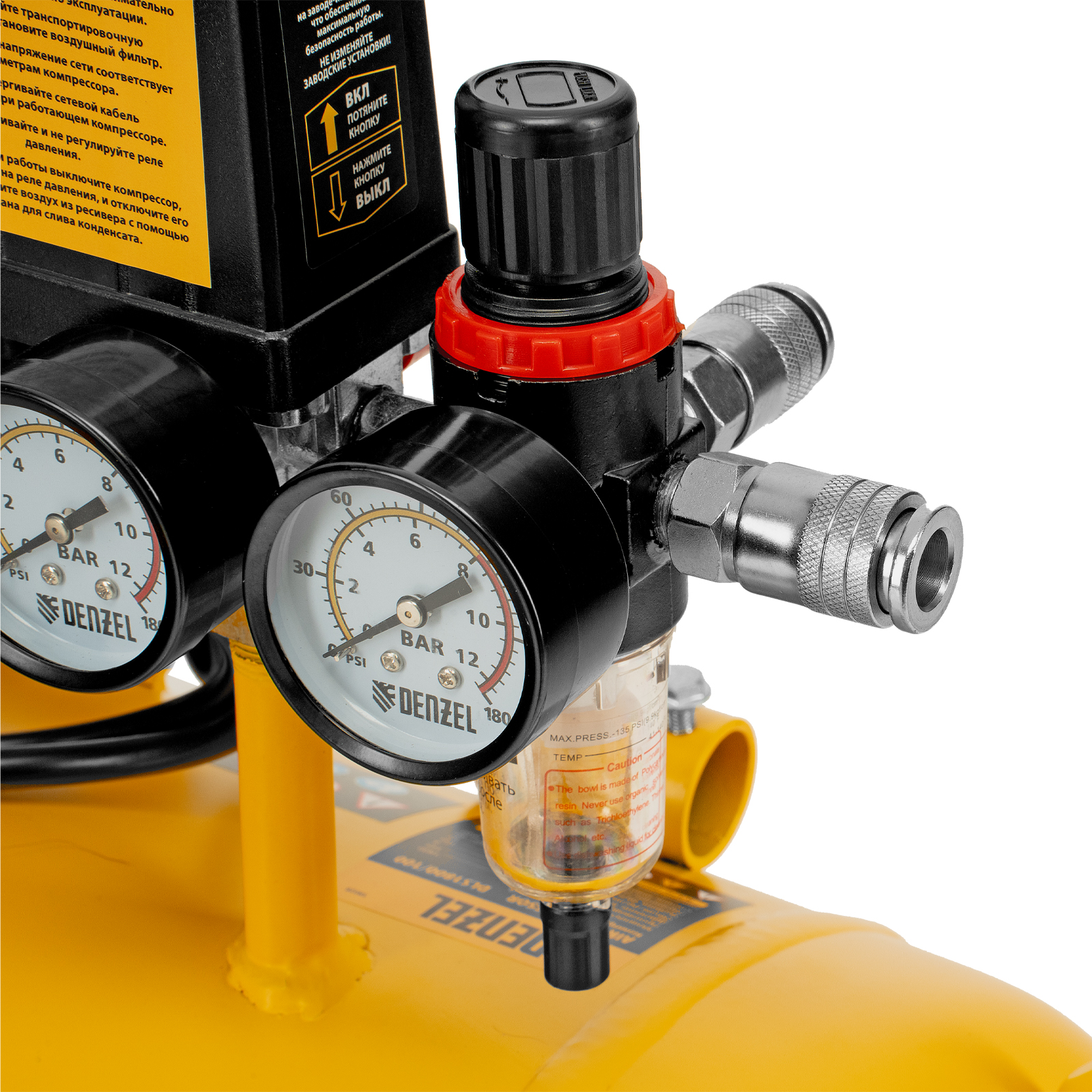 Безмасляный малошумный компрессор Denzel DLS 3300/100 58032 с блоком управления, мощностью 3300 (3 х 1100) Вт, объемом ресивера 100 л и производительностью 570 л/мин предназначен для обеспечения пневмоинструмента сжатым воздухом, подаваемым под давлением до 8 бар. Позволяет подключить пневматический заклепочник, дрель, шлифмашину, ударный гайковерт и т.д. Оптимален для работы с краскопультом и для продувки электронных компонентов, т. к. в сжатом воздухе отсутствуют частицы масла. Компрессор пригодится в мастерской, гараже, на строительной площадке.