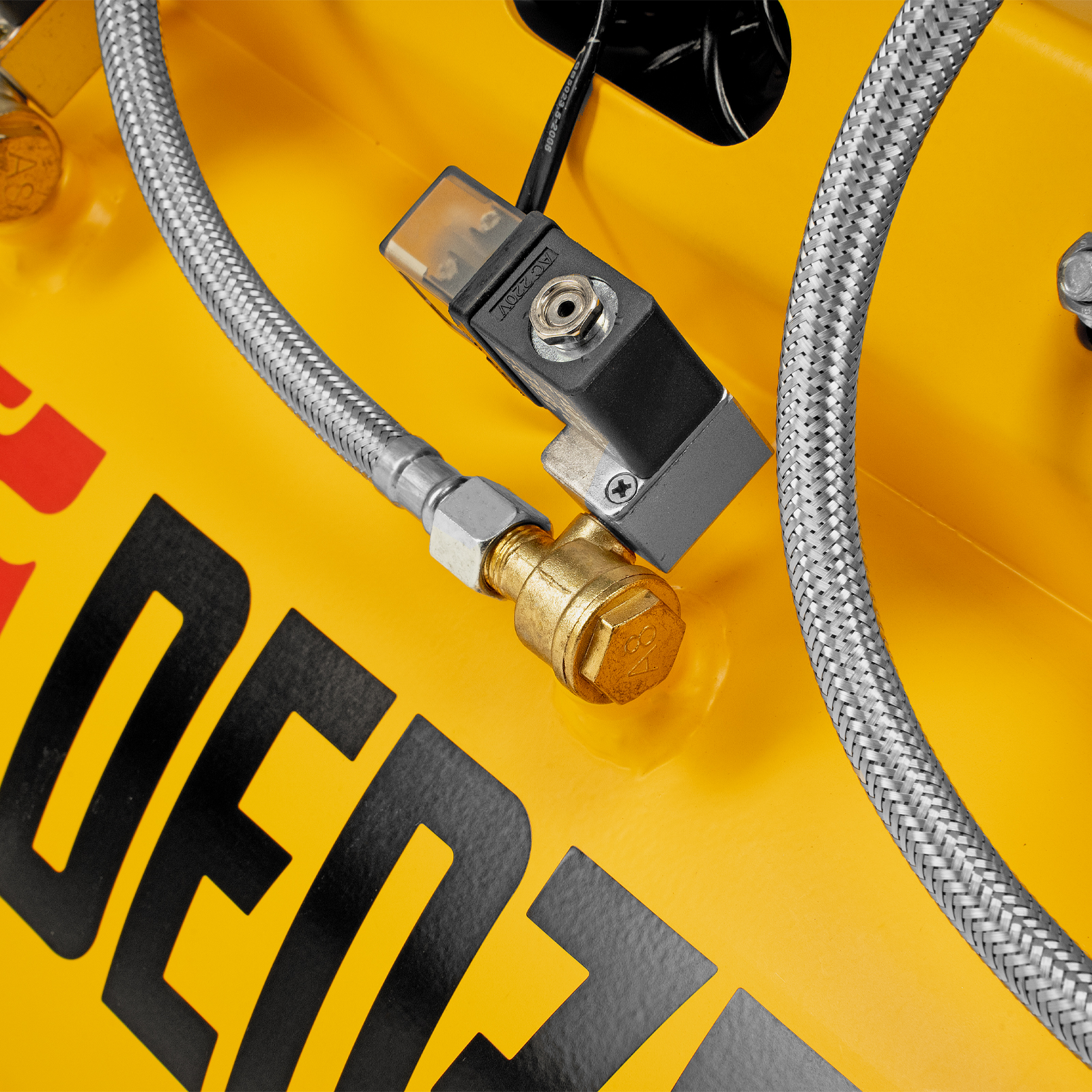 - Простая подготовка к работе — благодаря быстросъемному выходному коннектору подключение пневмоинструмента занимает несколько секунд.
