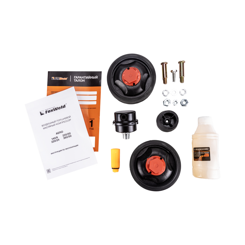 AERO 220/24 с комплектом AERO - воздушный поршневой масляный коаксиальный компрессор, обладающий повышенной производительностью и длительным сроком службы. Все металлические детали поршневого механизма покрыты масляной пленкой, которая предотвращает их износ и повреждение узлов при контакте друг с другом. Модель масляного коаксиального компрессора с производительностью 220 л/мин подходит для работы с большинством типов пневмоинструментов и для накачки шин. Нетребовательный к условиям эксплуатации, агрегат может использоваться дома, в гараже, на открытом воздухе. Для удобства транспортировки модель оснащена компактной ручкой и колёсами. Для длительной работы достаточно поддерживать нужный уровень масла и снижать конденсат из ресивера. Данная версия воздушного компрессора AERO 220/24 отличается расширенной комплектацией, включающей набор пневмоинструментов AERO (5 шт.).КОМПАКТНЫЙ: Компактные габариты и небольшой вес компрессора добавляют мобильности перемещения. Для удобства транспортировки AERO 220/24 оснащен удобной ручкой. НИЗКИЙ УРОВЕНЬ ШУМА: Данный компрессор отличается низким уровнем шума, что обеспечивает комфортную работу в любое время дня без помех для окружающих.РЕГУЛЯТОР ДАВЛЕНИЯ С МАНОМЕТРОМ: Предусмотрены регулировка и визуальный контроль выходного давления за счёт встроенных манометров и регулятора.РАСШИРЕННАЯ КОМПЛЕКТАЦИЯ: Данная версия воздушного компрессора AERO 220/24 отличается расширенной комплектацией, включающей набор пневмоинструментов AERO (5 шт.).ПРЕИМУЩЕСТВА:Автоматика для поддержания постоянного давленияТермозащита электродвигателяЗащита от перегрузкиАварийный клапан с манометромРегулятор подачи воздуха с манометромВысокая производительностьРедукционный и аварийный клапаныАвтоматическое реле с манометромБыстросъёмный разъём Rapid F (2 шт.)Контроль уровня маслаКолёса для транспортировкиПростое обслуживаниеНабор пневмоинструментов AERO (5 шт.) - включен в комплект поставки!КОМПЛЕКТАЦИЯ:Компрессор масляный коаксиальный AERO 220/24 с комплектом – 1 шт.;Колёса с комплектом для крепления – 2 шт.;Резиновая нижняя опора с комплектом крепления – 1 шт.;Сапун масляного картера – 1 шт.;Воздушный фильтр – 1 шт.;Пистолет-распылитель с верхним баком – 1 шт.;Пистолет для подкачки шин – 1 шт.;Продувочный пистолет – 1 шт.;Пластиковый воздушный шланг 5 м с быстросъёмными соединениями рапид – 1 шт.;Соединитель рапид «папа» - внешняя резьба ½ дюйма – 1 шт.;Масло в бутылке – 1 шт.;Инструкция по эксплуатации + Гарантийный талон – 1 компл.*Производитель оставляет за собой право вносить изменения в комплектацию оборудования без предварительного уведомления покупателя.