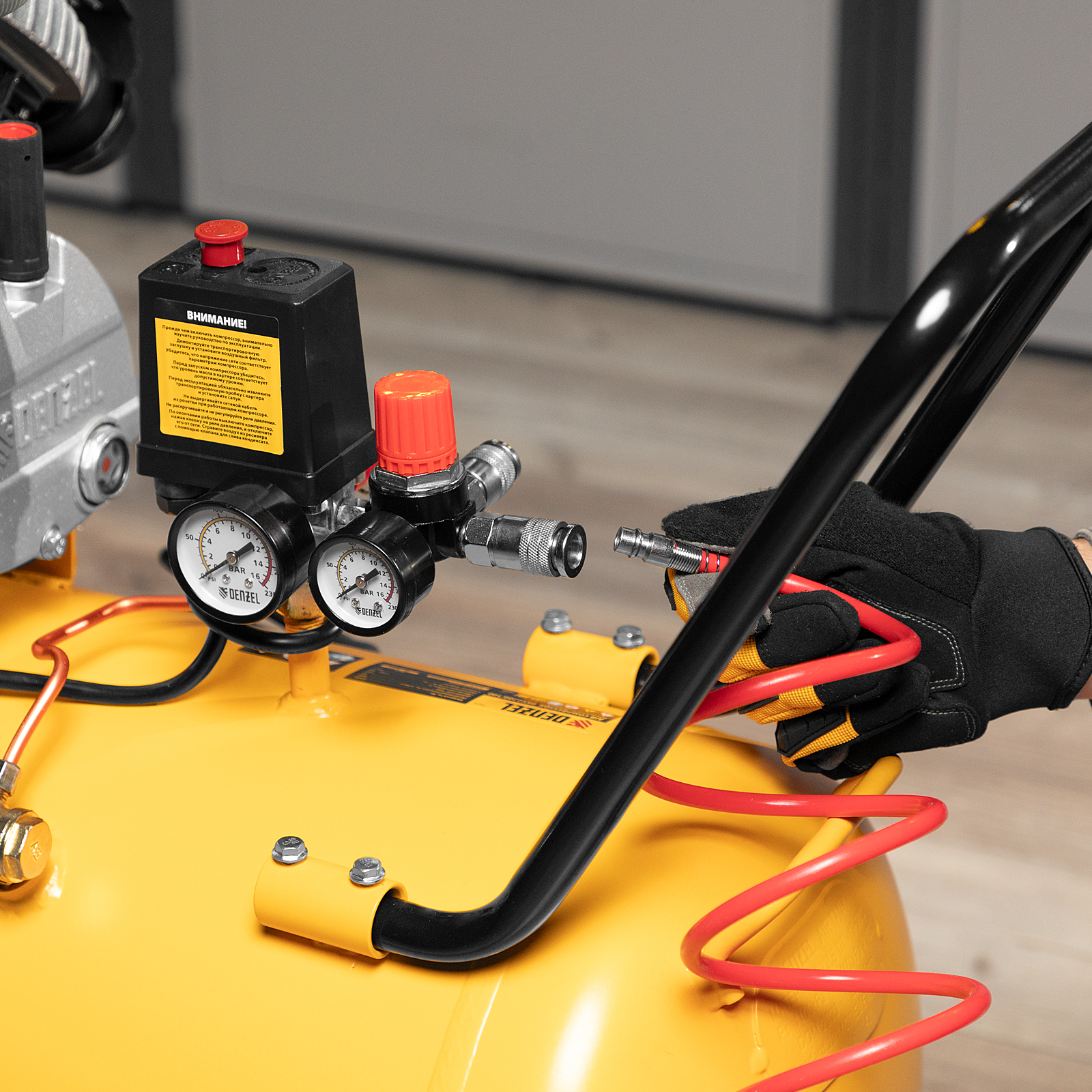 - Безопасная эксплуатация — компрессор оснащен клапаном сброса избыточного давления.