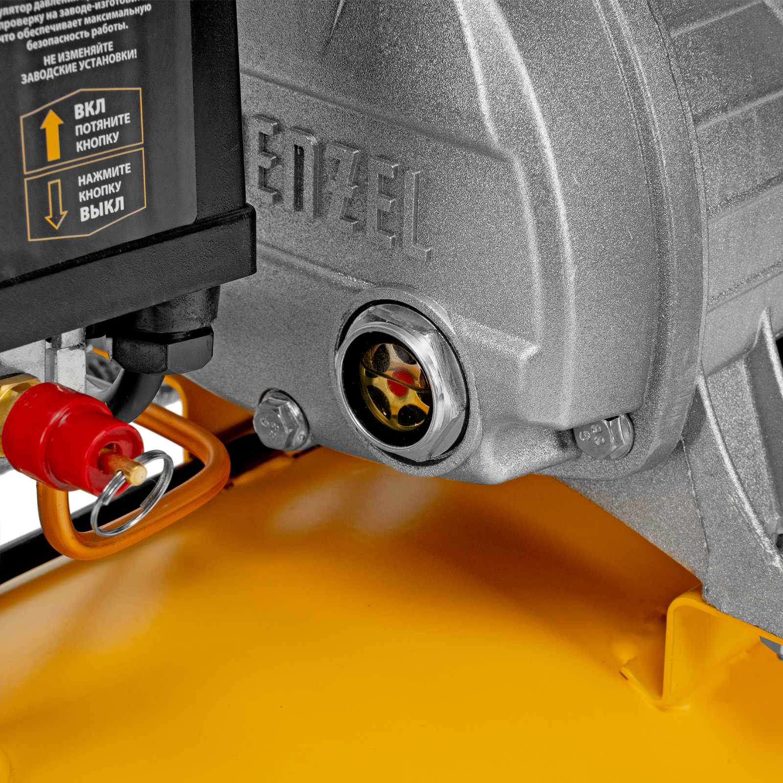- Надежные опоры — резиновые ножки обеспечивают устойчивость компрессора и эффективно поглощают вибрации.