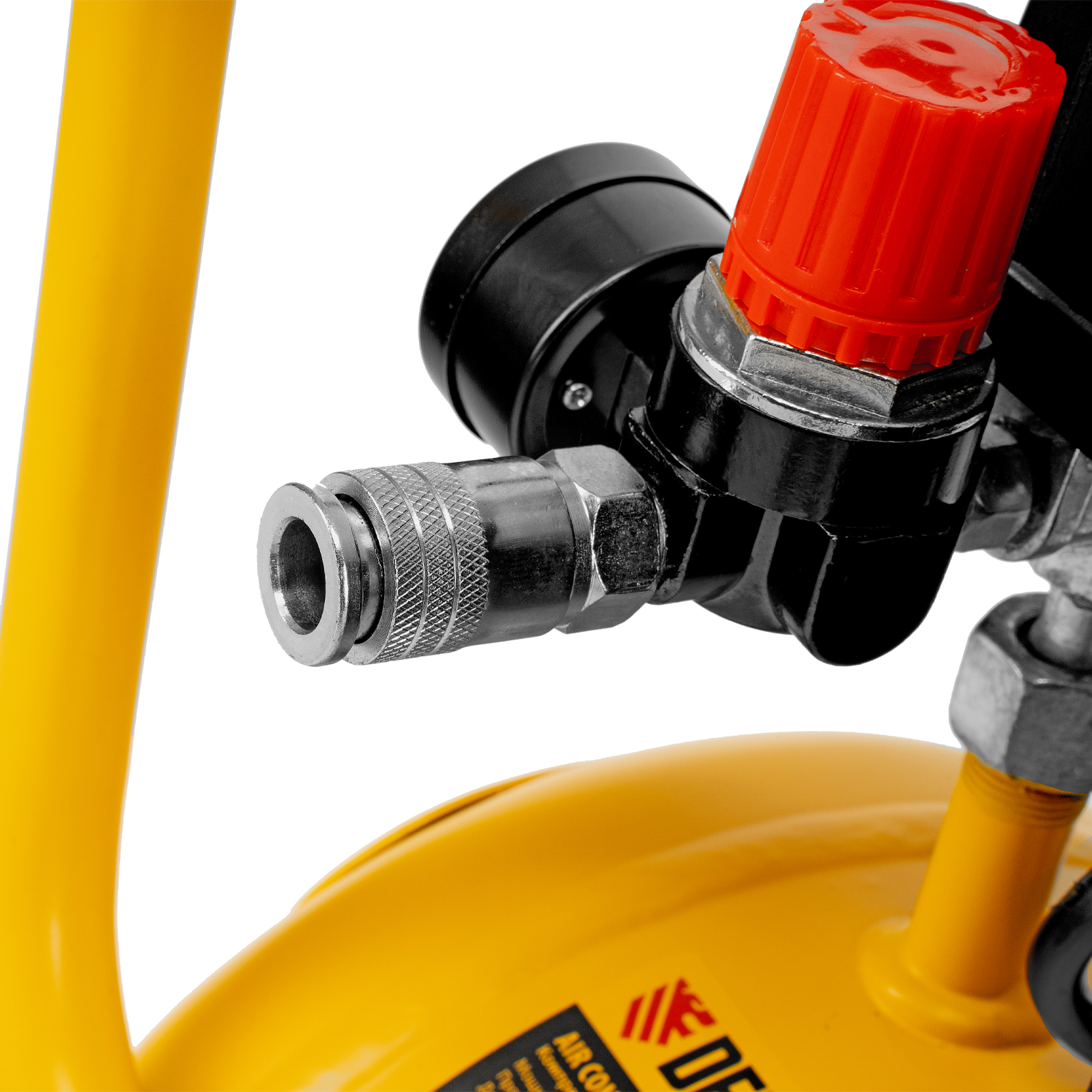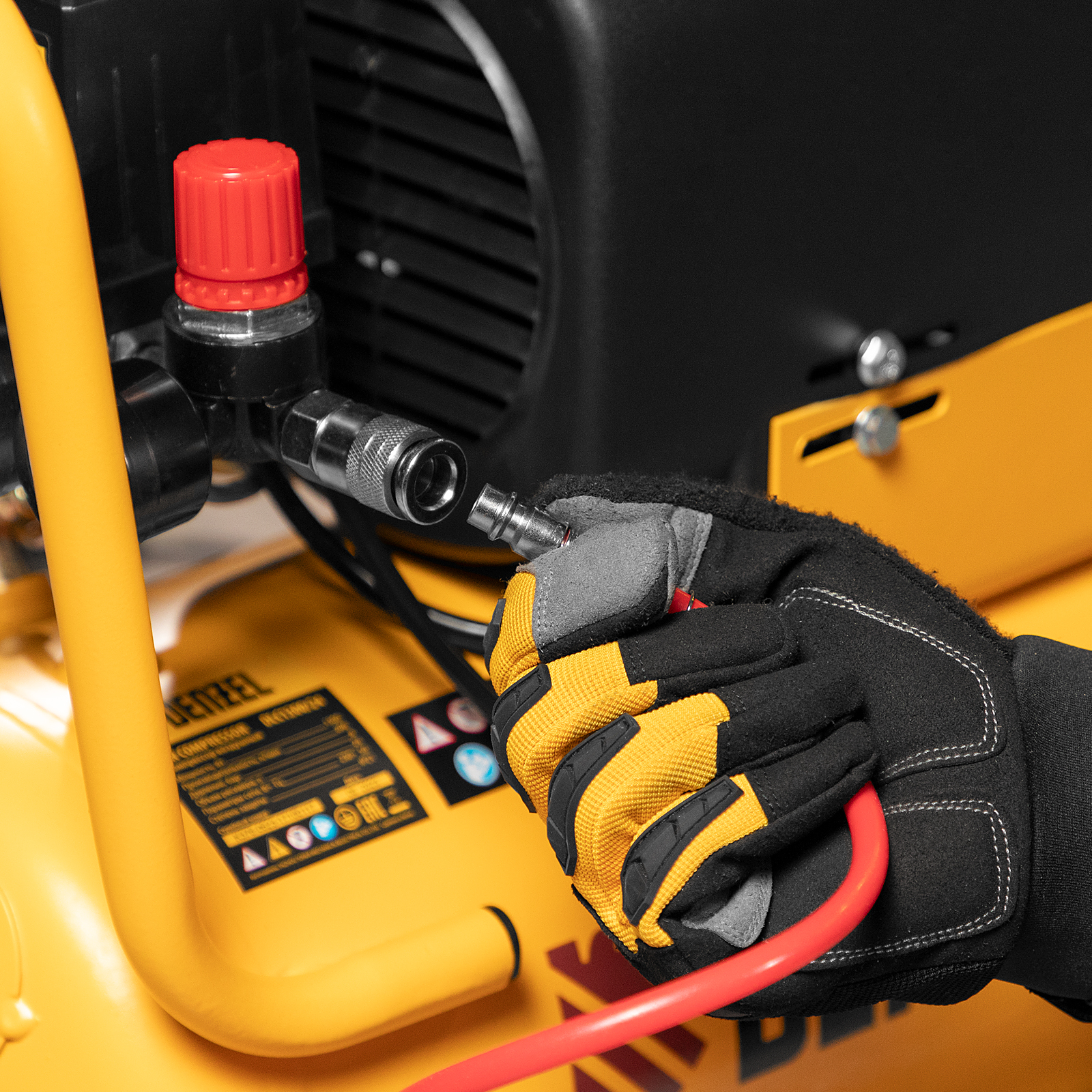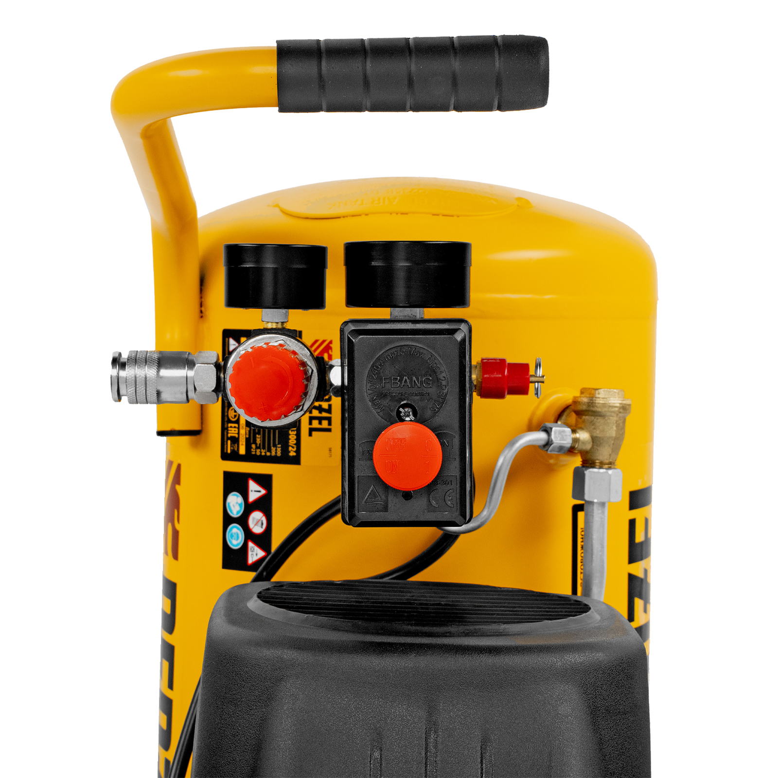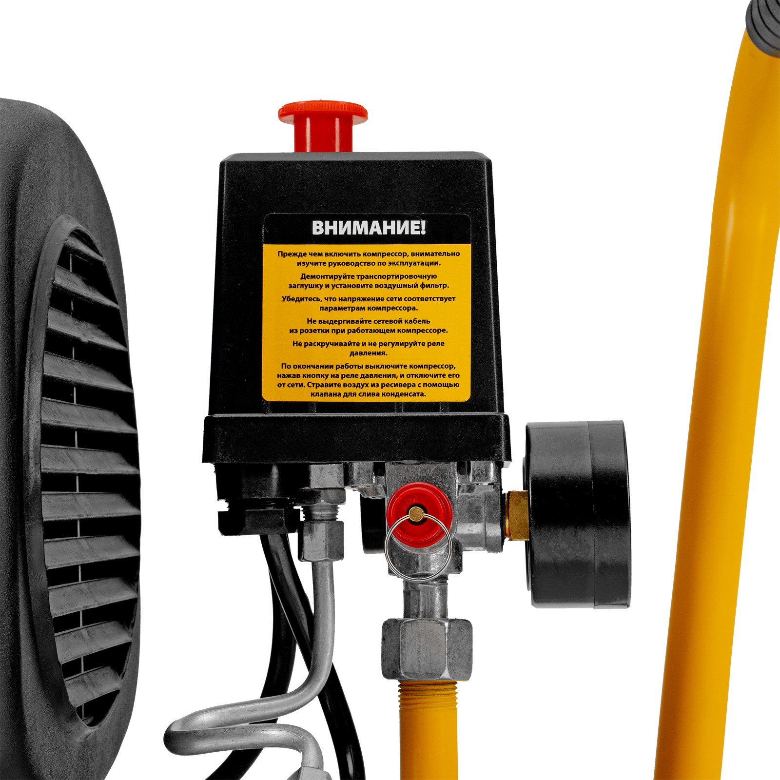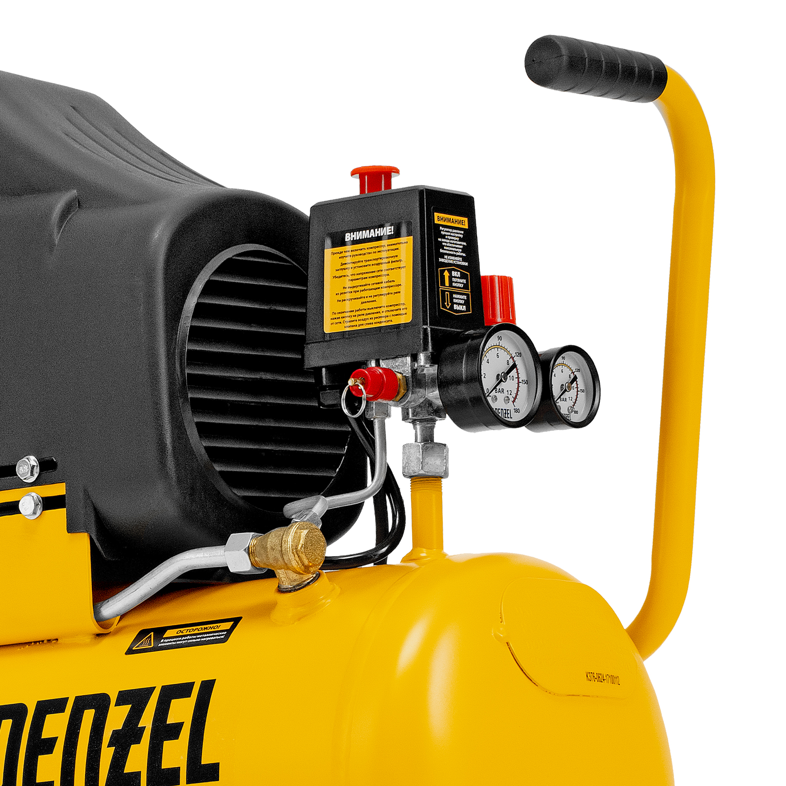 - Контроль рабочих параметров — компрессор оснащен двумя манометрами для отслеживания давления в пневмолинии и ресивере.