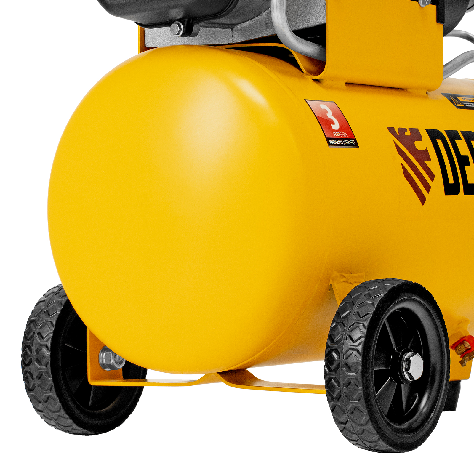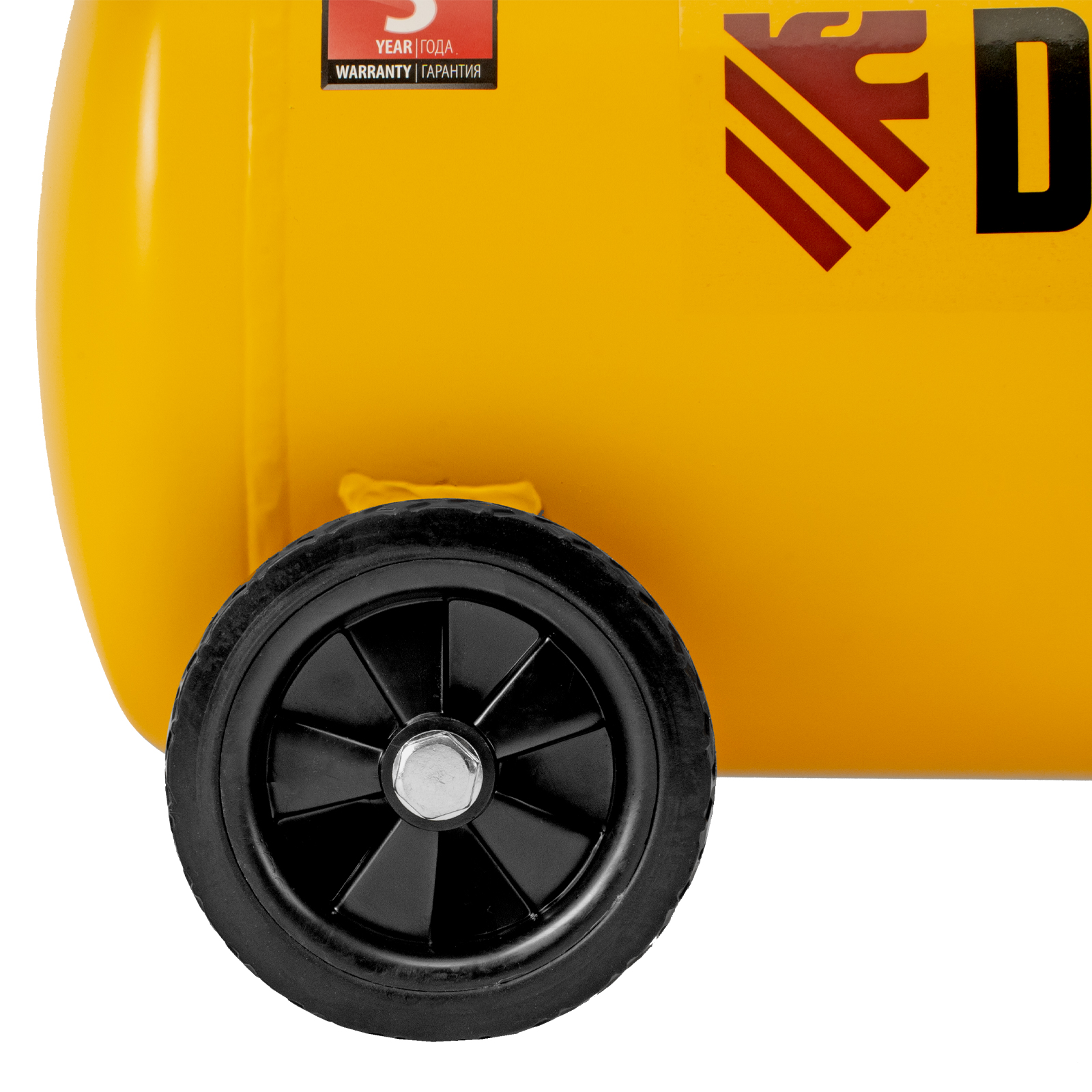 - Мобильность — компрессор, оснащенный ручкой и колесами, весит 22,6 кг, что упрощает его транспортировку.