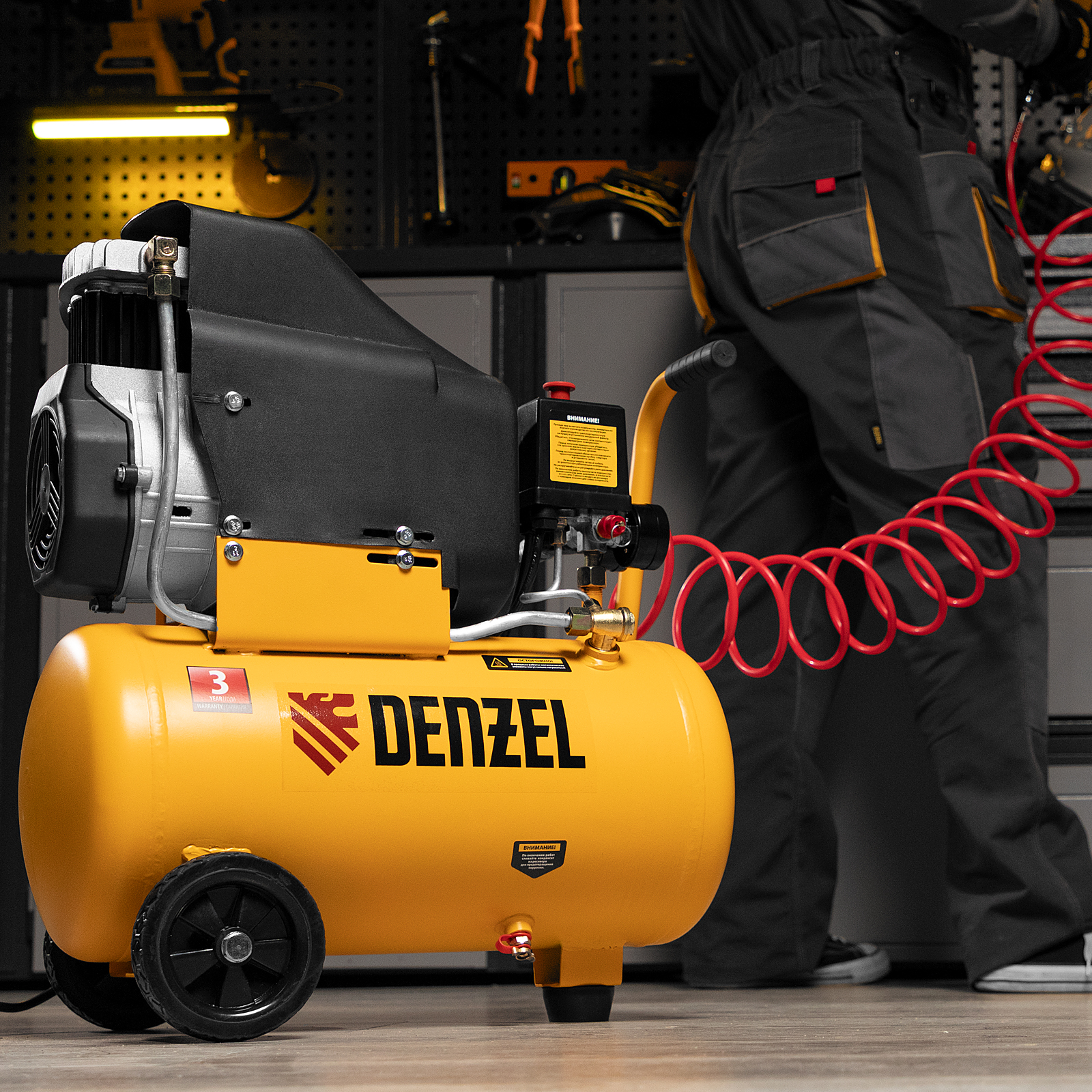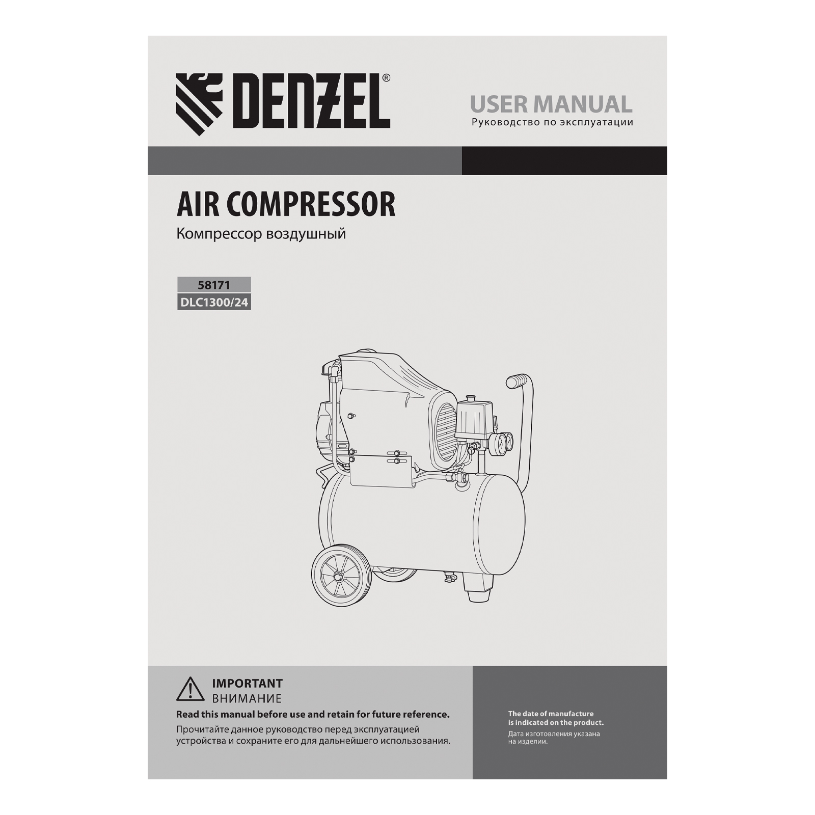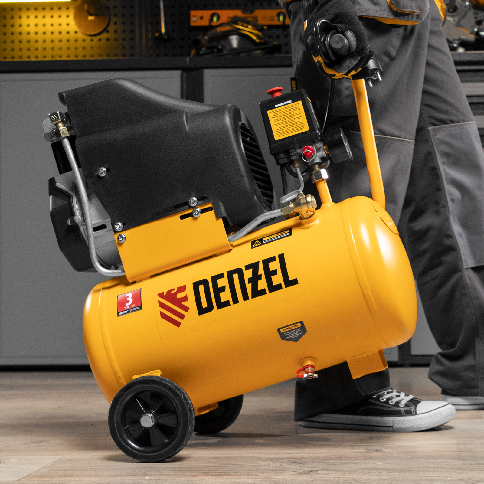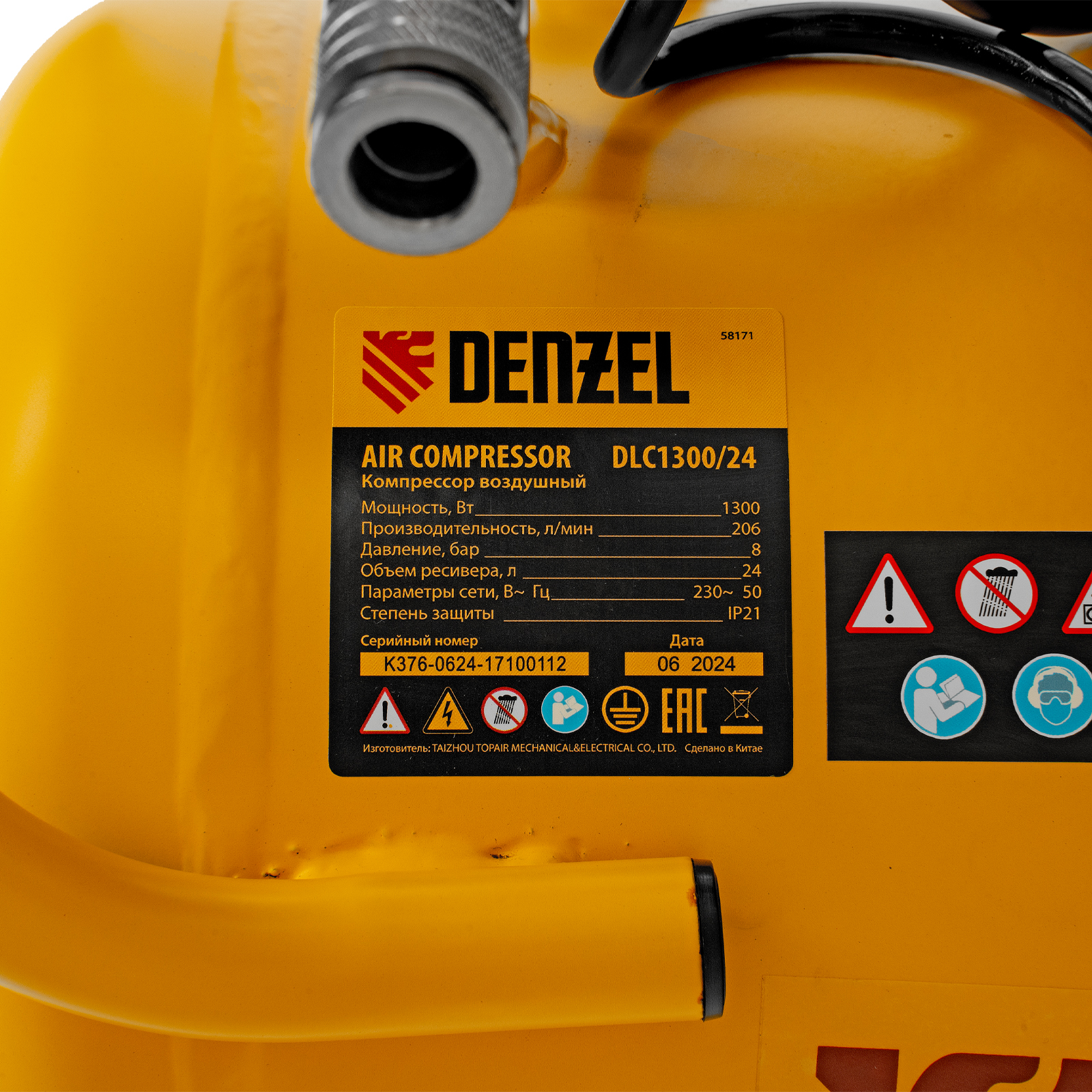 Компрессор воздушный DLC1300/24 безмасляный 1.3 кВт, 24 литра, 206 л/мин Denzel в Челябинске