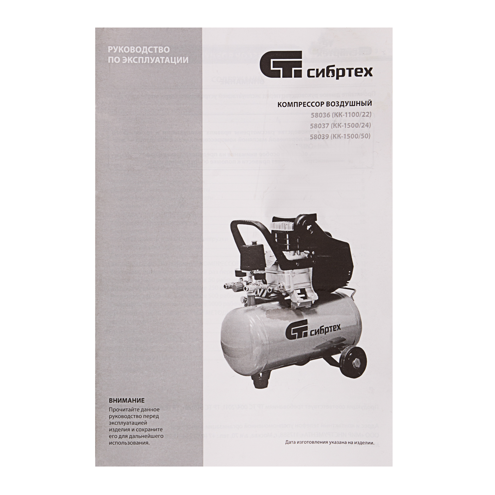 Компрессор воздушный КК-1500/50, 1.5 кВт, 198 л/мин, 50 л, прямой привод, масляный Сибртех в Челябинске