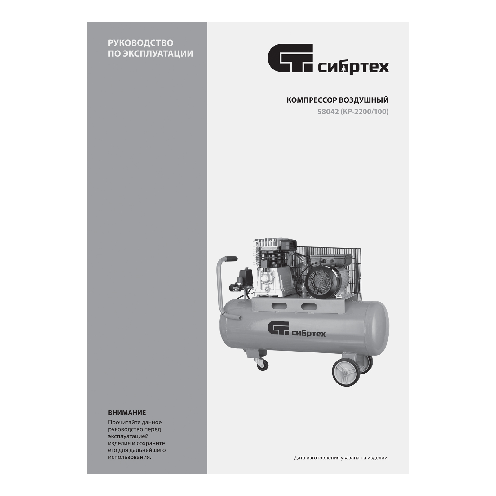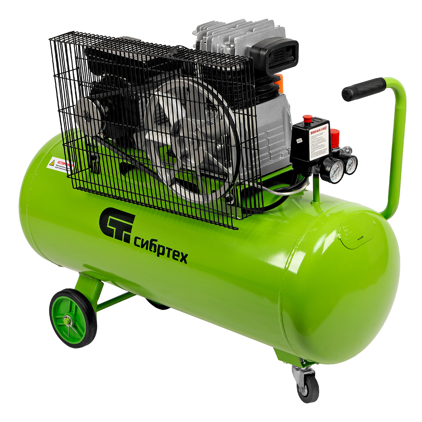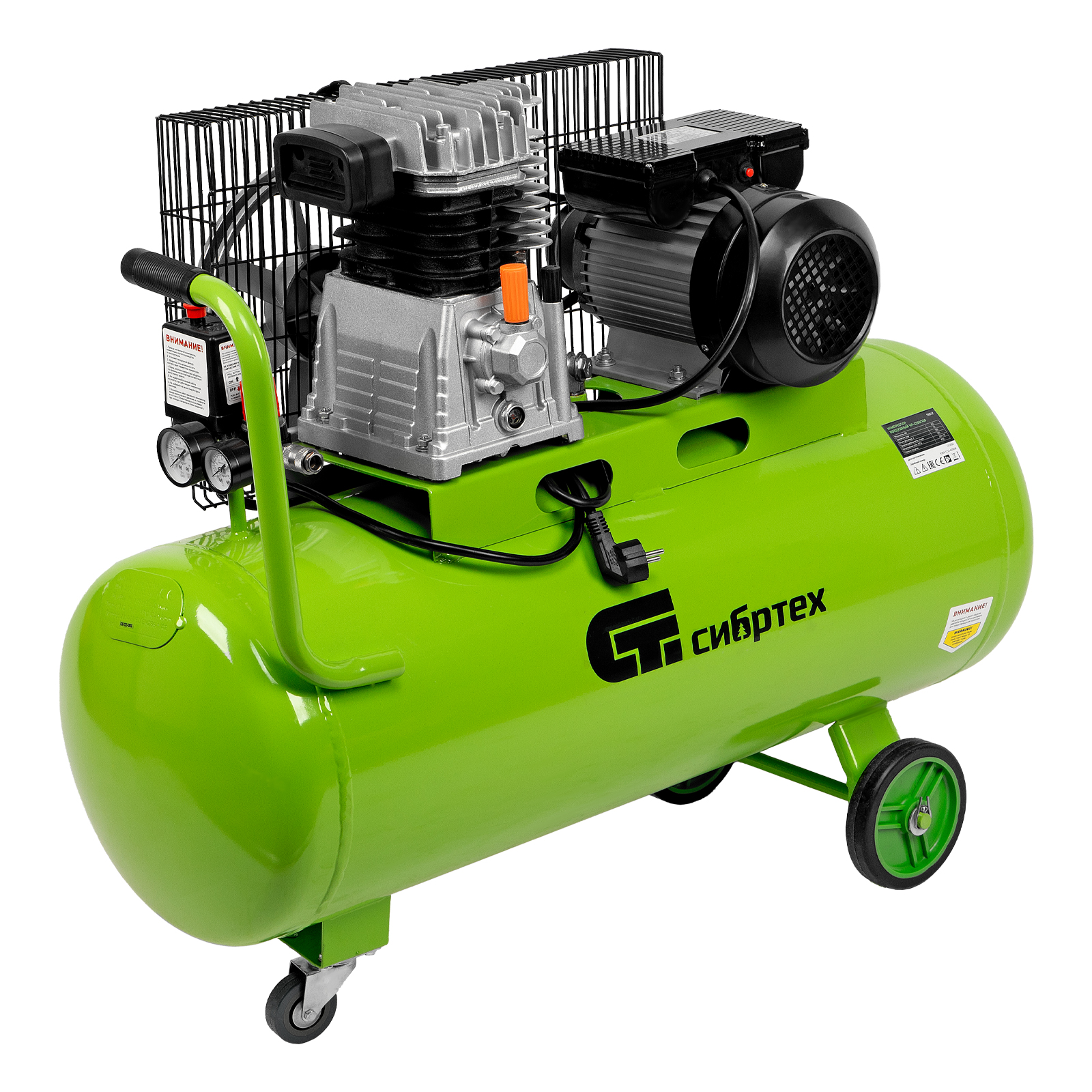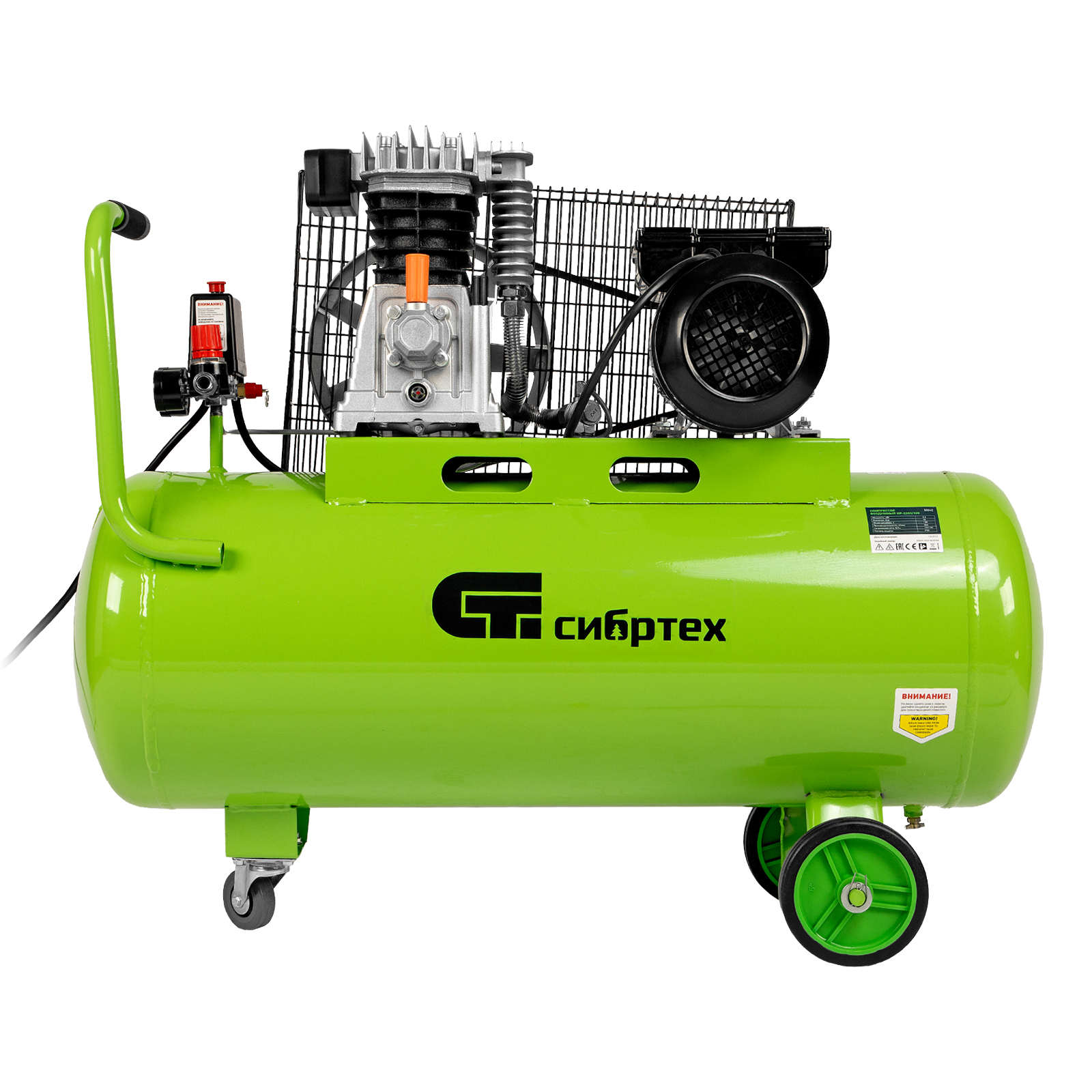 Компрессор воздушный КР-2200/100, 2.2 кВт, 350 л/мин, 100 л, ременной привод, масляный Сибртех в Челябинске