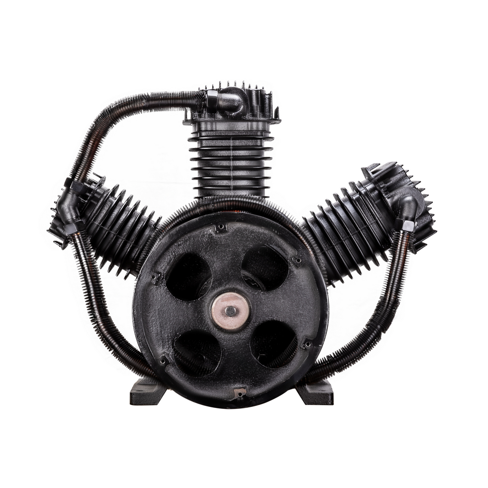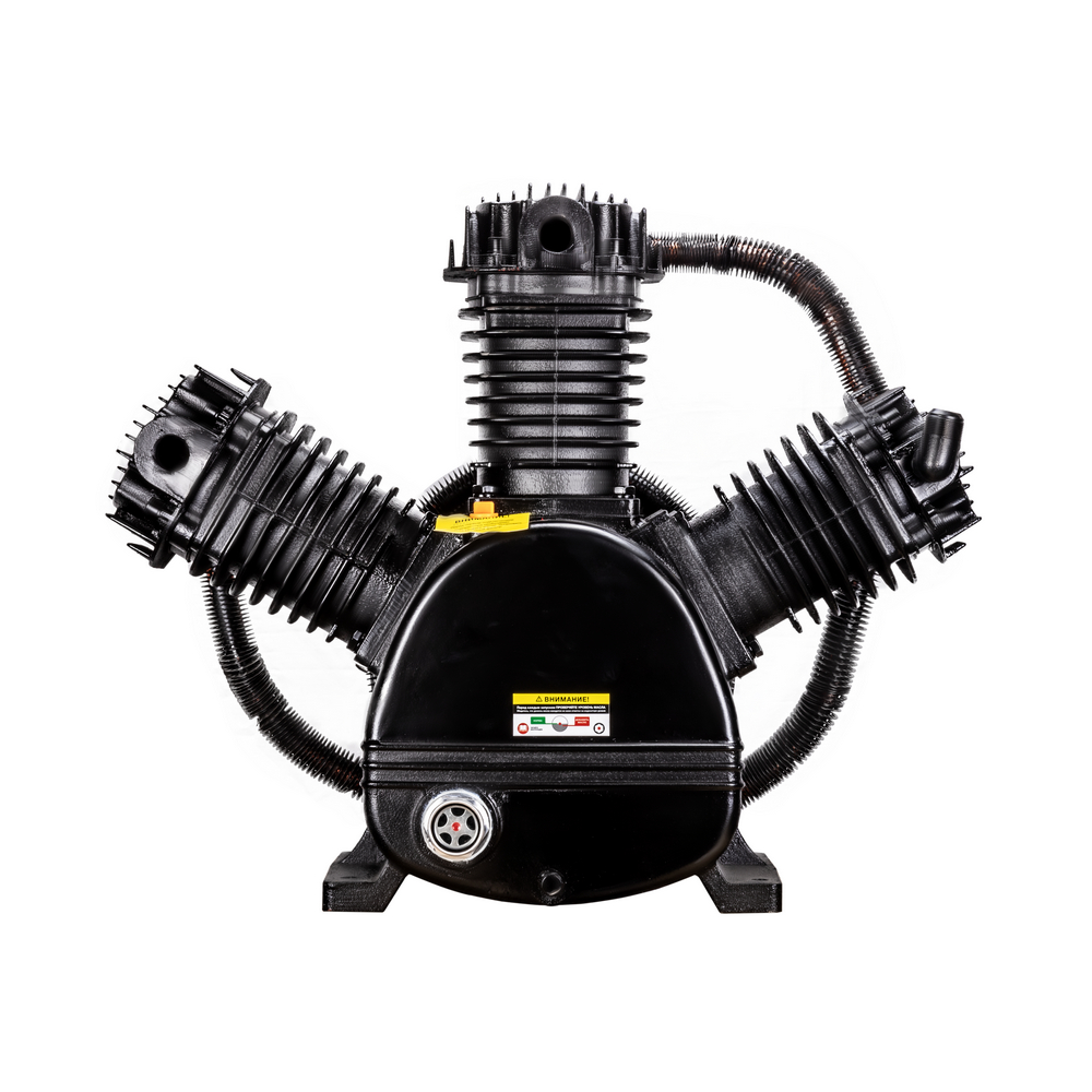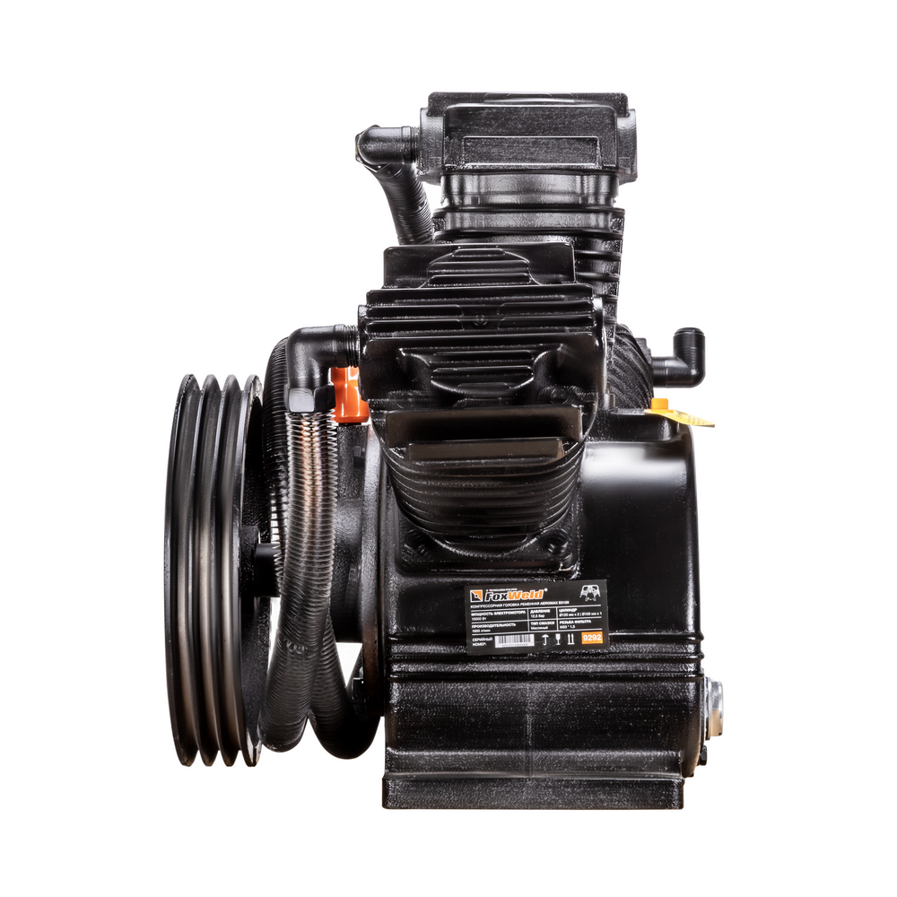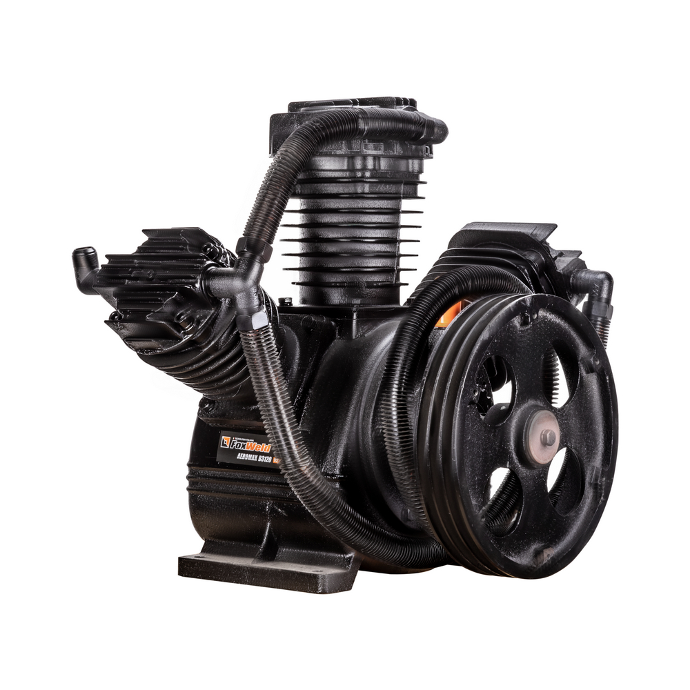Компрессорная головка ременная AEROMAX B3120 – это сменная помпа (нагнетательная часть) для поршневых ременных масляных воздушных компрессоров. В конструкции головки три поршня диаметром 100 мм. Мощность подключаемого электродвигателя должна быть не менее 15 кВт. При данной мощности производительность на входе может достигать 1650 л/мин при рабочем давлении до 12,5 бар. Рёбра охлаждения (рубашки) на цилиндрах и лопасти на ведомом шкиве обеспечивают эффективное охлаждение. Ведомый двухручейковый предустановлен и идёт в комплекте. Для смазки цилиндропоршневой группы предусмотрен встроенный масляный картер для компрессорного масла VDL 100. Подключение к компрессору механическое - через ременную передачу. Воздушная магистраль от ресивера компрессора подключается к выпуску компрессорной головки. Электромотор компрессора через ременную передачу вращает шкив компрессорной головки, приводя в движение поршни внутри цилиндров, которые соответственно тактам производят забор воздуха из окружающей среды через впускное отверстие и под давлением закачивают его в ресивер компрессора по воздушной магистрали. На впуск необходимо установить воздушные фильтры с посадочной резьбой M33 х 1,5 (приобретаются отдельно).ПРЕИМУЩЕСТВА:Универсальная компрессорная головка для двигателя 15 кВтШкив в комплектеСверхпроизводительный трёхцилиндровый одноступенчатый нагнетательКОМПЛЕКТАЦИЯ: Компрессорная головка в сборе со шкивом – 1 шт.; Охлаждающий вентилятор – 1 шт.; Руководство по эксплуатации – 1 шт.