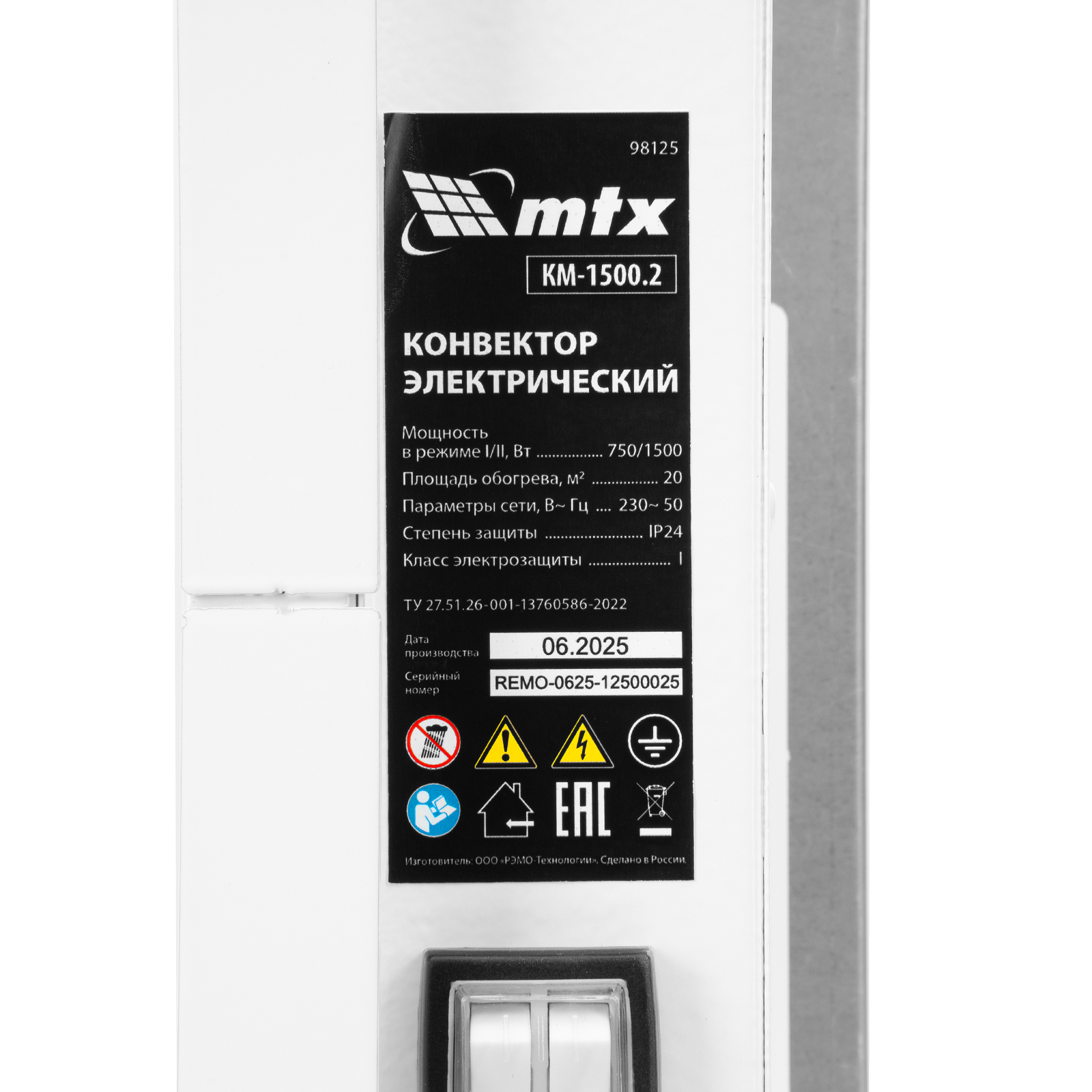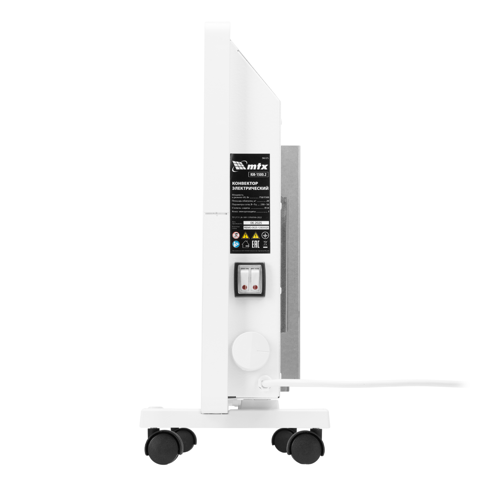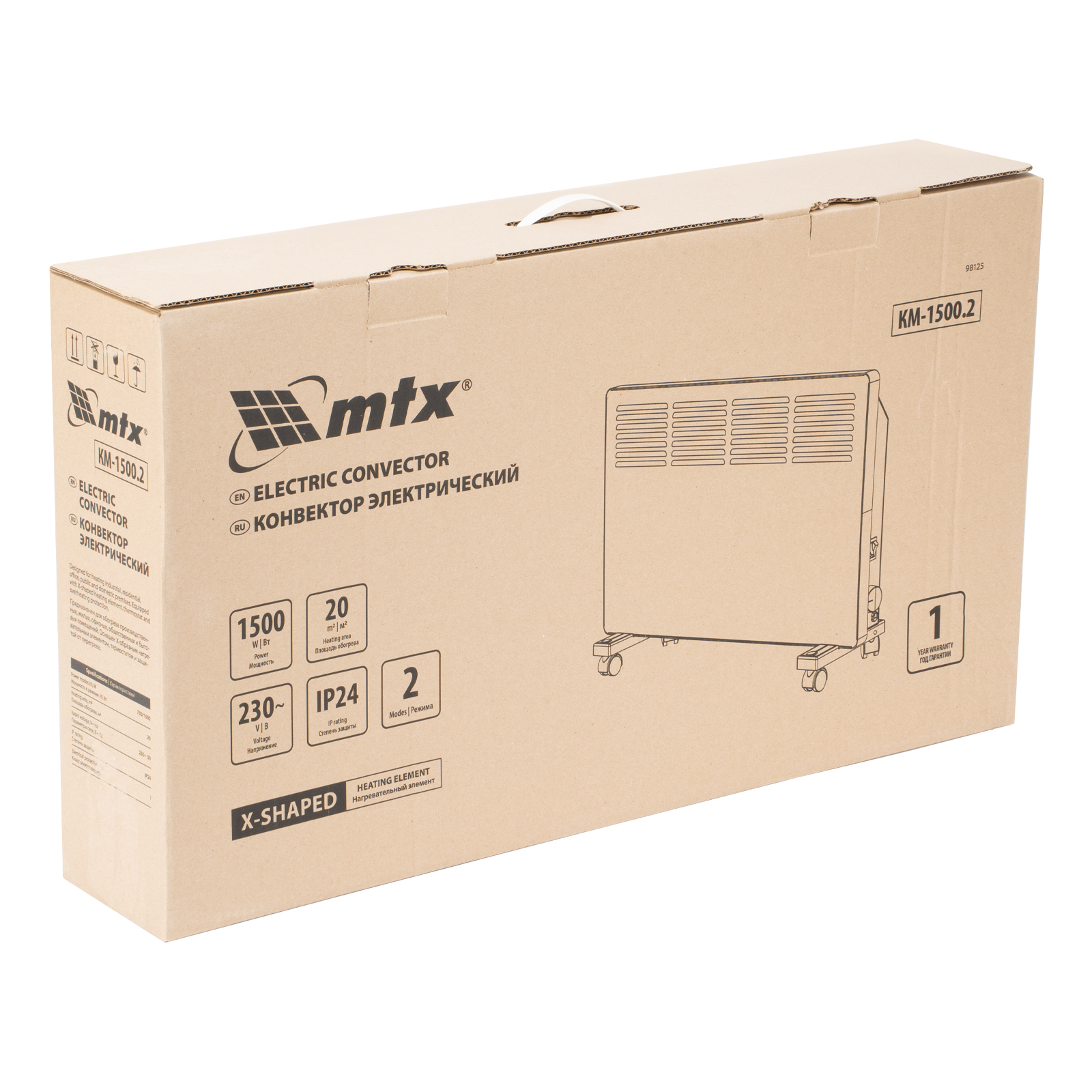 Конвектор электрический КМ-1500.2, 230 В, 1500 Вт, X-образный нагреватель, колеса, термостат MTX в Челябинске