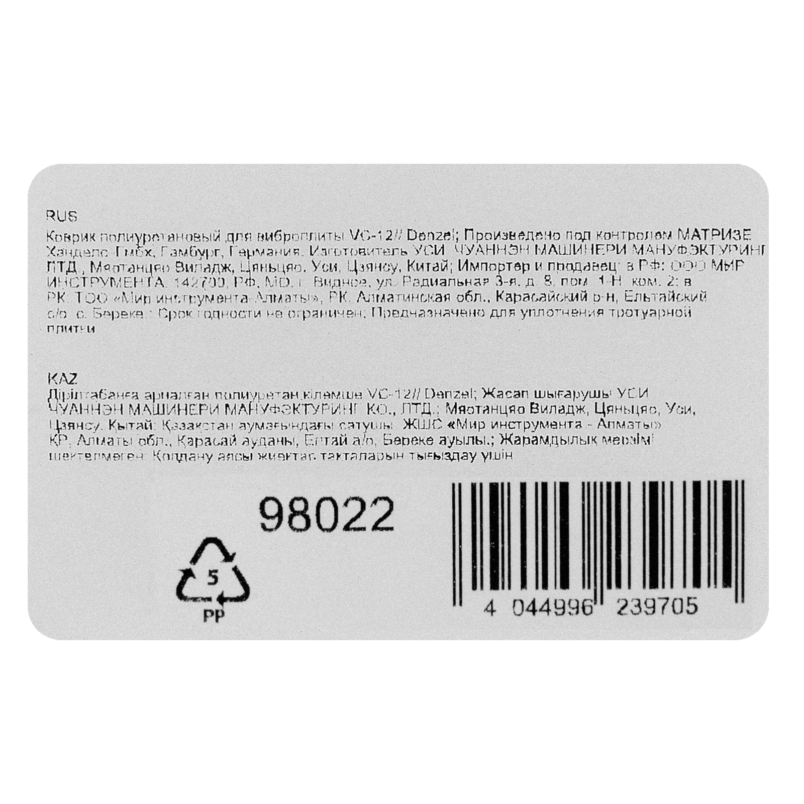 Коврик полиуретановый для виброплиты VC-30W Denzel в Челябинске