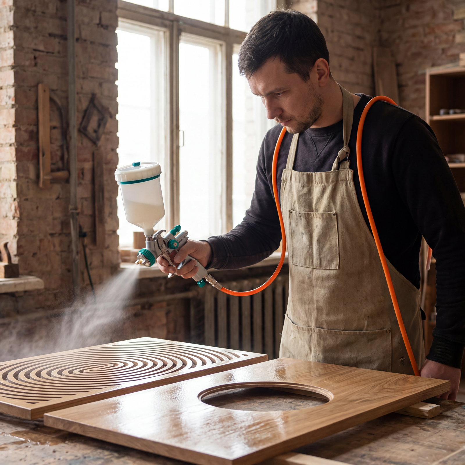 - Высокое качество работы — при распылении лака или краски на обрабатываемой поверхности образуется тонкий слой без подтеков, что позволяет проводить многослойное окрашивание.