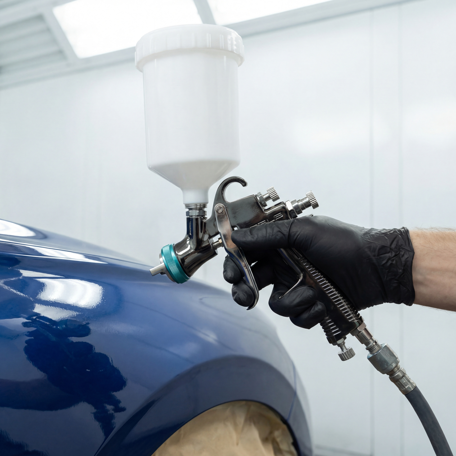 - Легкая подготовка — регуляторы давления воздуха, количества подаваемой краски и хода иглы с понятными насечками позволяют быстро настроить размер факела и добиться идеального результата.