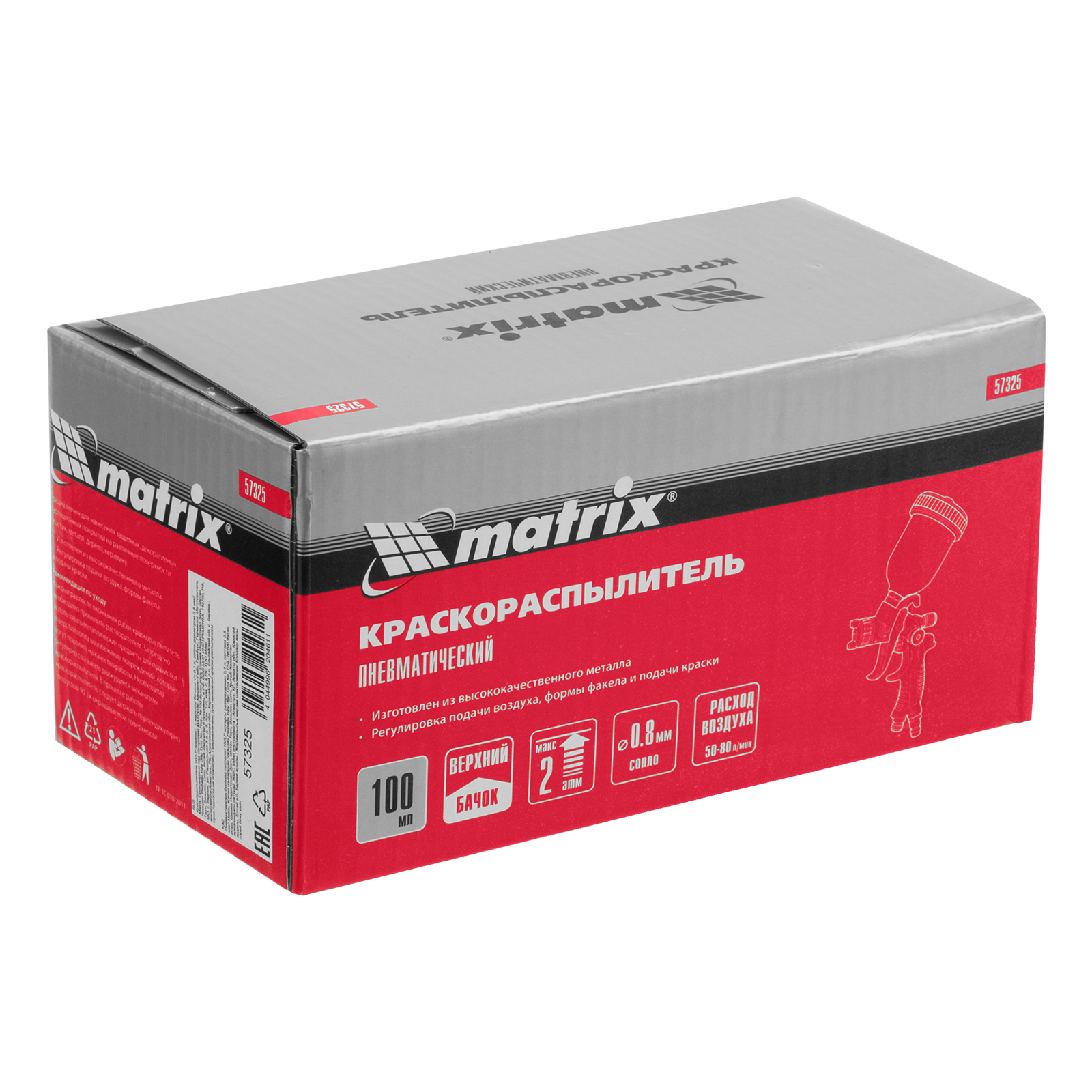 Краскораспылитель HVLP пневмат. с верхним бачком V= 0,1 л, сопло диаметром 0.8 мм Matrix в Челябинске