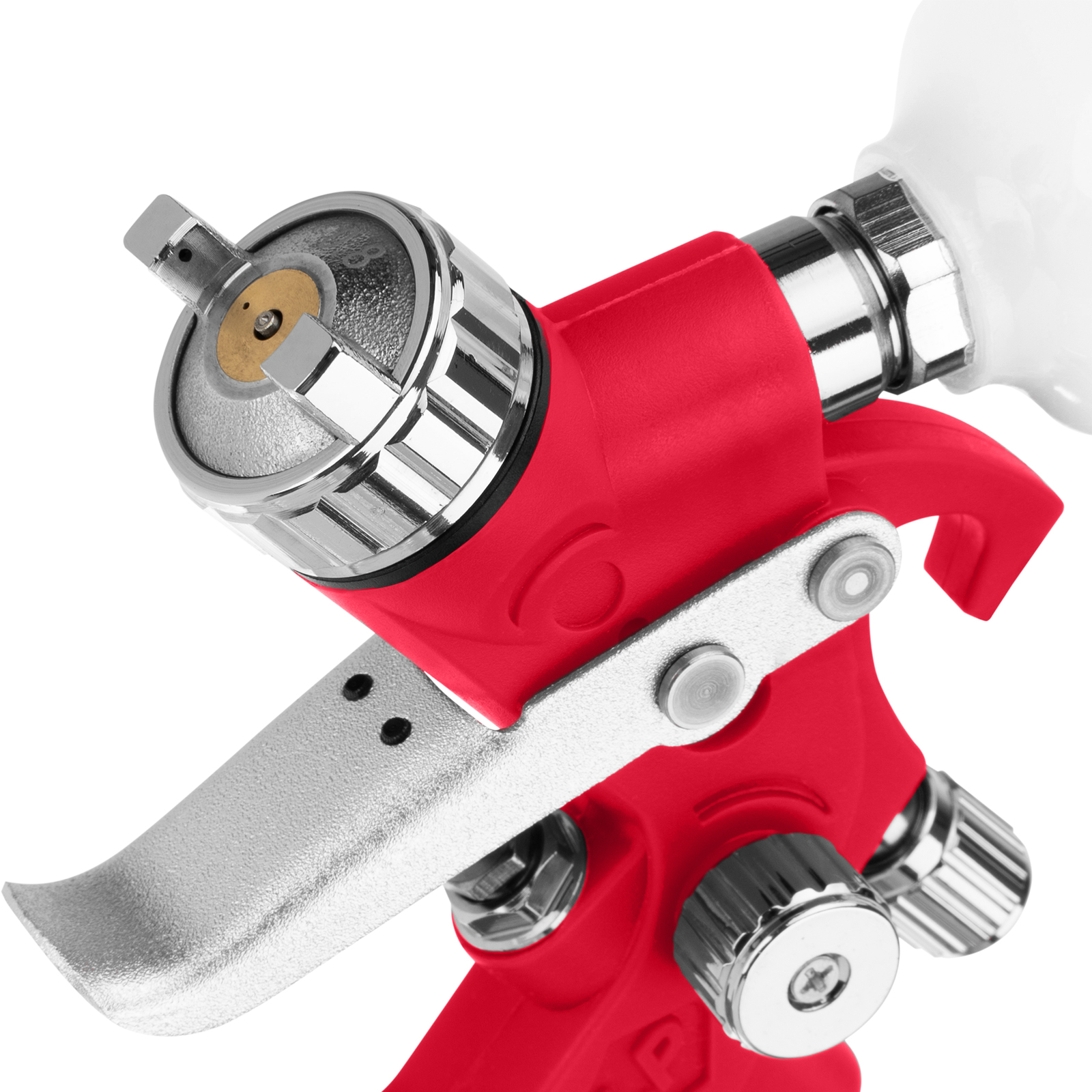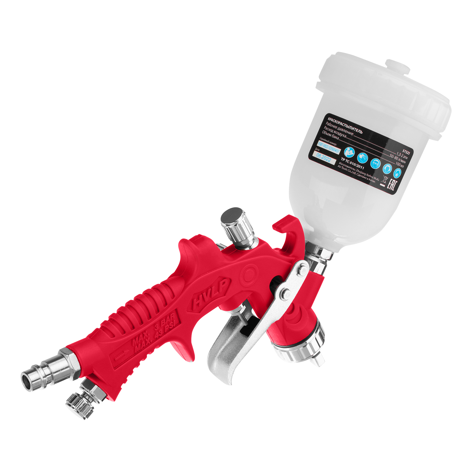 - Верхнее расположение бака — краскопульт удобно заправлять, лакокрасочный материал расходуется полностью.