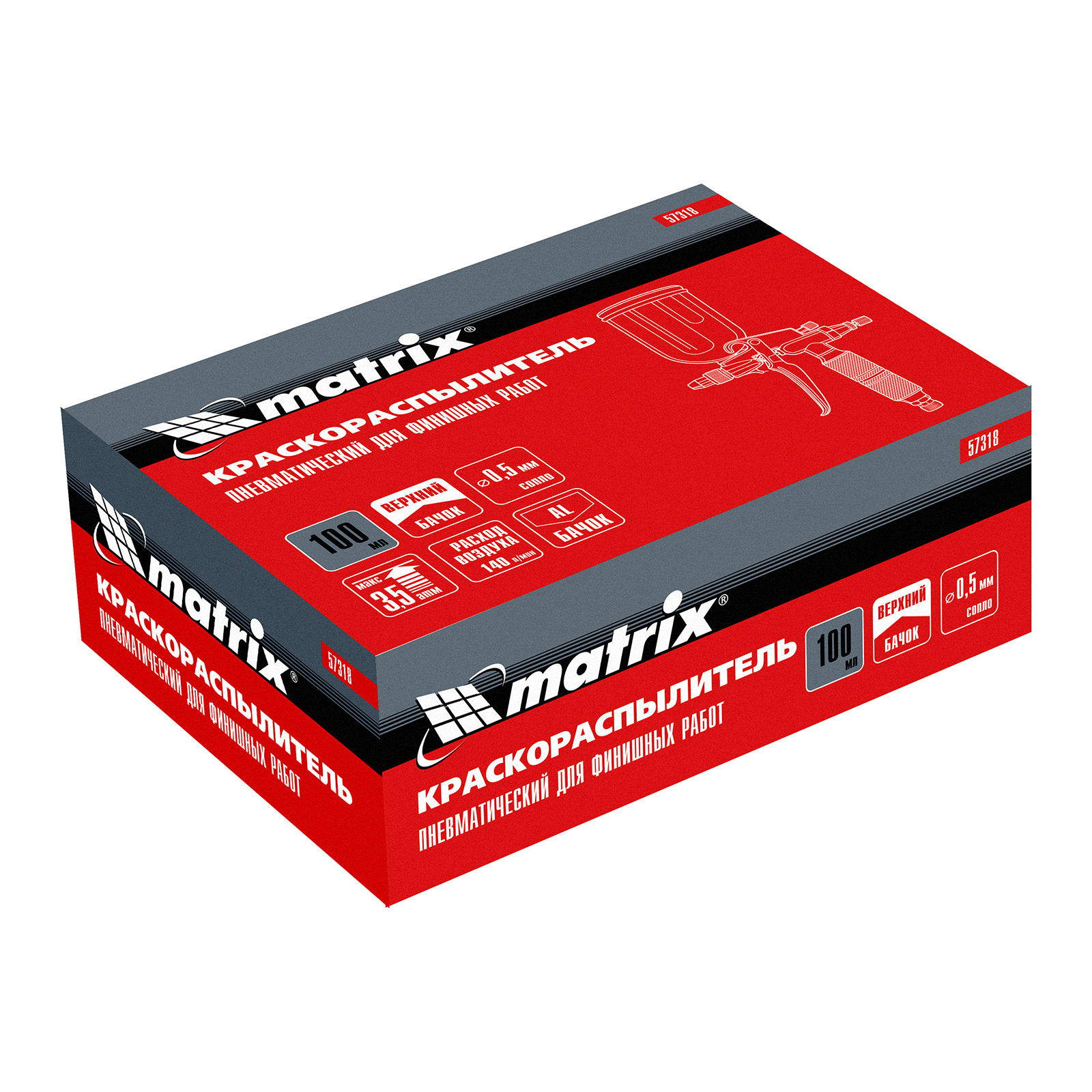 Краскораспылитель пневматический для финишных работ с верхним бачком V 0,1 л, сопло D 0.5 мм Matrix в Челябинске