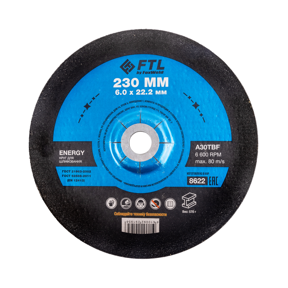 Круг для шлифования FTL Energy 230 х 6 х 22,2 мм A30TBF