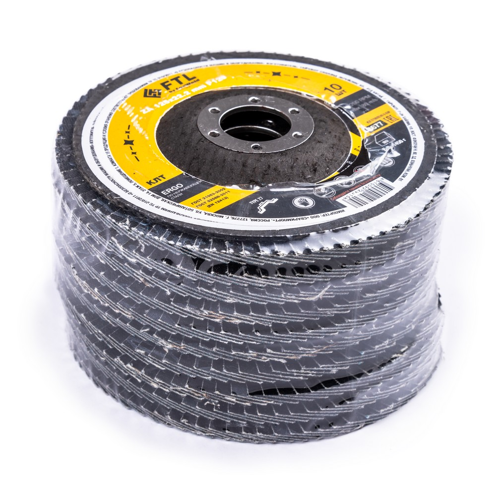 Круг лепестковый для шлифования по нержавеющей стали FTL Ergo 27 цирконий 125 х 22,2 мм P120