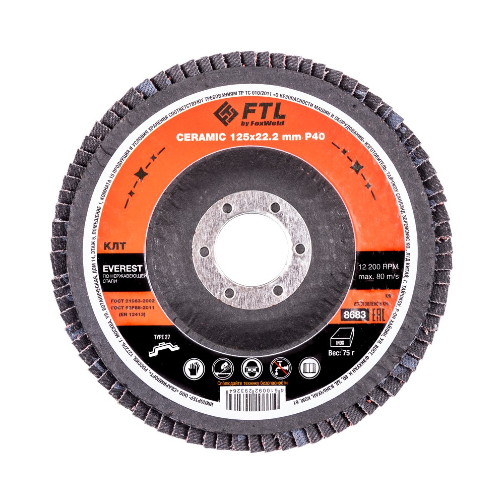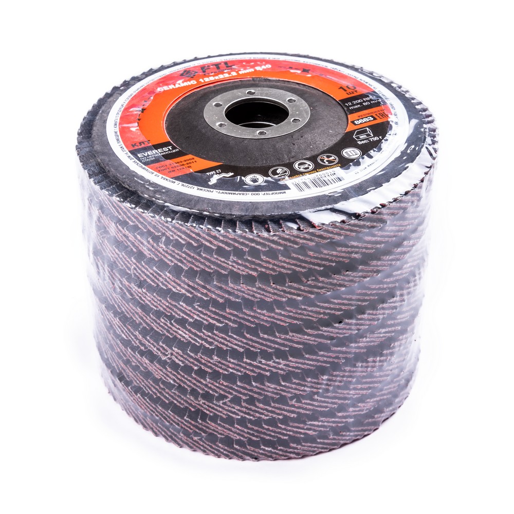 Круг лепестковый с керамическим абразивом для шлифования по нержавеющей стали FTL Everest 27 125 х 22,2 мм P40 в Челябинске