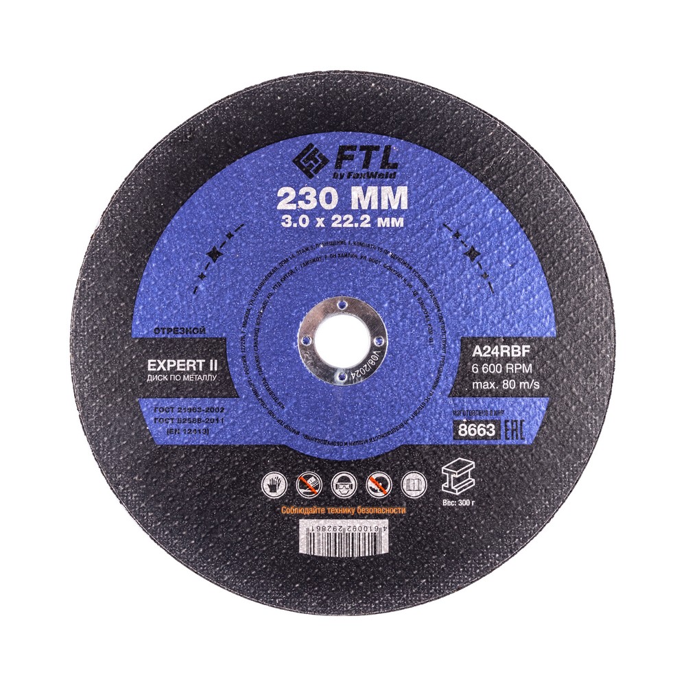 Диск отрезной по металлу FTL Expert II 230 х 3 х 22,2 мм A24RBF - расходный инструмент для ручной угловой шлифовальной машины, предназначенный для резки различных изделий из чёрных металлов (чугунов). Конструктивно представляет собой плоский диск (тип 41), поверхность которого покрыта слоем абразивных частиц. Посыпка скреплена между собой бакелитовой связкой и армирована одной стекловолоконной сеткой и тканой подложкой. Поставляется во влагозащитной упаковке. Серия EXPERT II — это эволюция абразивного компаунда общего назначения, оптимизированного для повышенной износостойкости. Новая формула состава предлагает ещё больше универсальности, позволяя работать также по изделиям из нержавеющей стали без искрообразования в случаях, если к качеству состава нержавеющей стали заготовки не предъявляются высокие требования. Максимальное количество резов достигается при работе с изделиями из чёрных металлов. *ВНИМАНИЕ! В случае повышенных требований к качеству нержавеющей стали заготовок не рекомендуется использовать во избежание перегрева, прижога, окисления, потери эффективности легирующих добавок - например, при резе элементов ответственных конструкций.ИЗНОСОСТОЙКОСТЬ: Благодаря премиальной формуле режущая и шлифовальная способность абразива снижается в процессе работы значительно медленнее, позволяя выполнить больше работы.УНИКАЛЬНЫЙ СОСТАВ: Технология производства включает в себя эксклюзивный рецепт абразива и смол: применение только твёрдых составов класса ВТ1, ВТ2, армирование сеткой из стекловолокна. Высокая твёрдость связывающей смолы позволяет сделать значительно большее количество резов по сравнению с кругами с обычным абразивом.МЕТАЛЛИЧЕСКОЕ КОЛЬЦО: Металлическое кольцо на диске обеспечивает плотную посадку на фланец УШМ, исключая биения и вибрацию при работе.ГЕРМЕТИЧНОСТЬ УПАКОВКИ: Диски упакованы в специальную термоусадочную герметичную плёнку, которая предохраняет от пыли и влаги при длительном хранении в условиях повышенной влажности, на строительных объектах и крупных промышленных производствах.ПРЕИМУЩЕСТВА:Универсальный круг (*)Тип 41 (плоский)Высокая износостойкость (долгий срок службы)Состав на базе оксида алюминияПрофессиональный компаундМеталлическое кольцо для плотной посадки на фланец УШМВлагозащитная упаковкаКОМПЛЕКТАЦИЯ: Отрезной круг по чёрному металлу в термоусадочной плёнке со вкладышем – 5 шт.