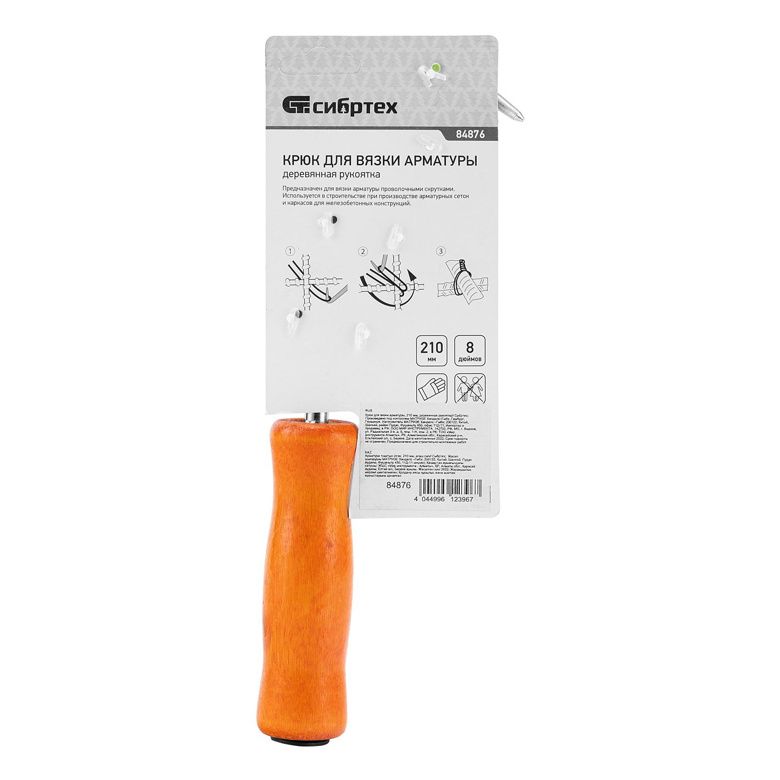 Крюк для вязки арматуры, 210 мм, деревянная рукоятка Сибртех в Челябинске