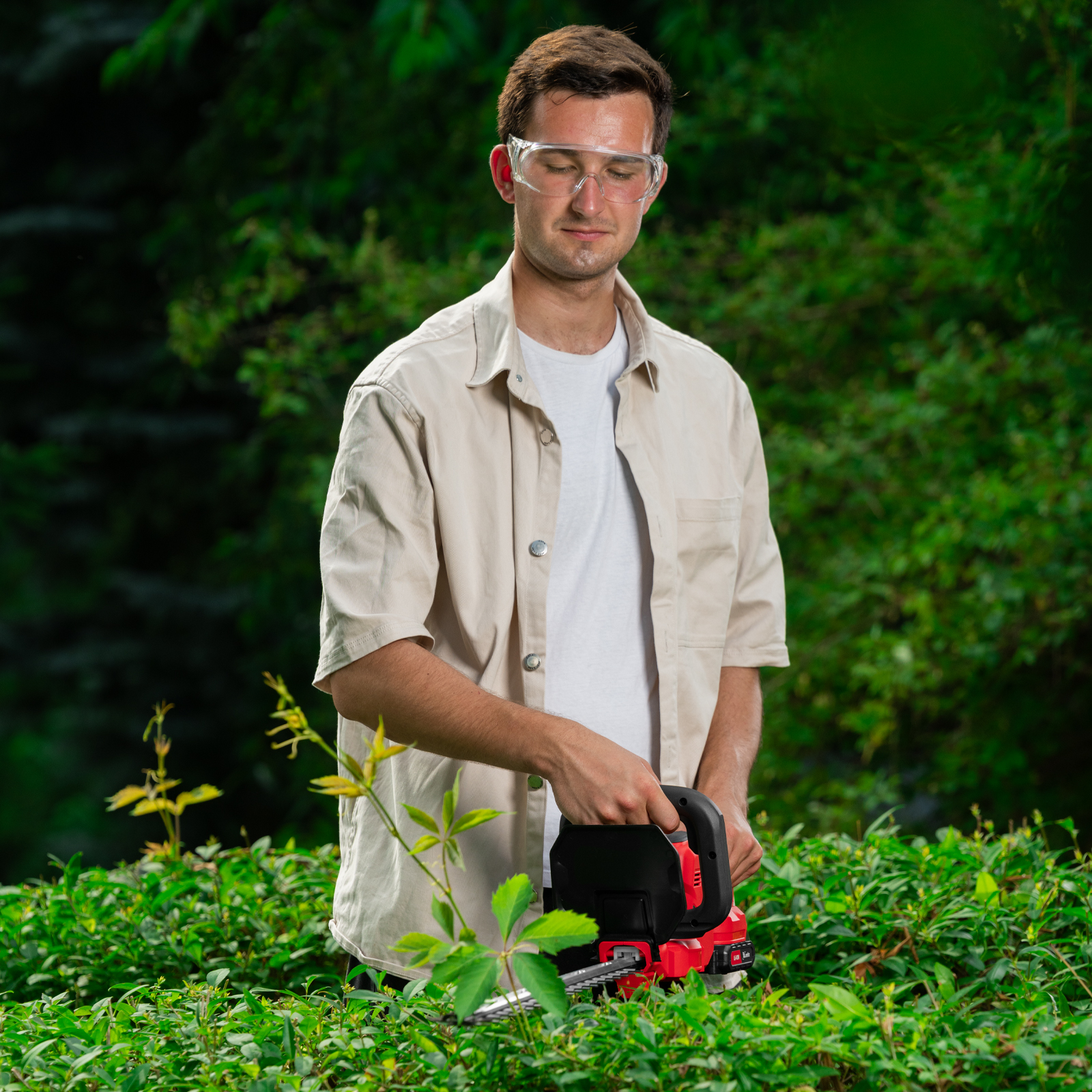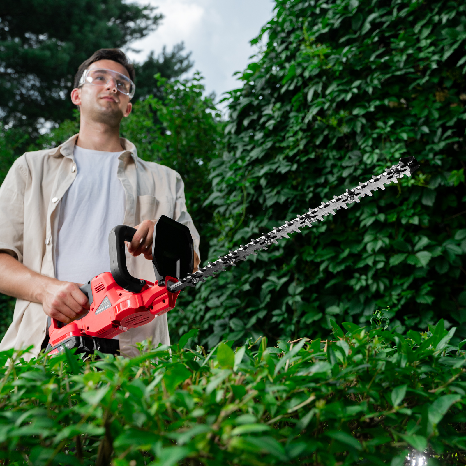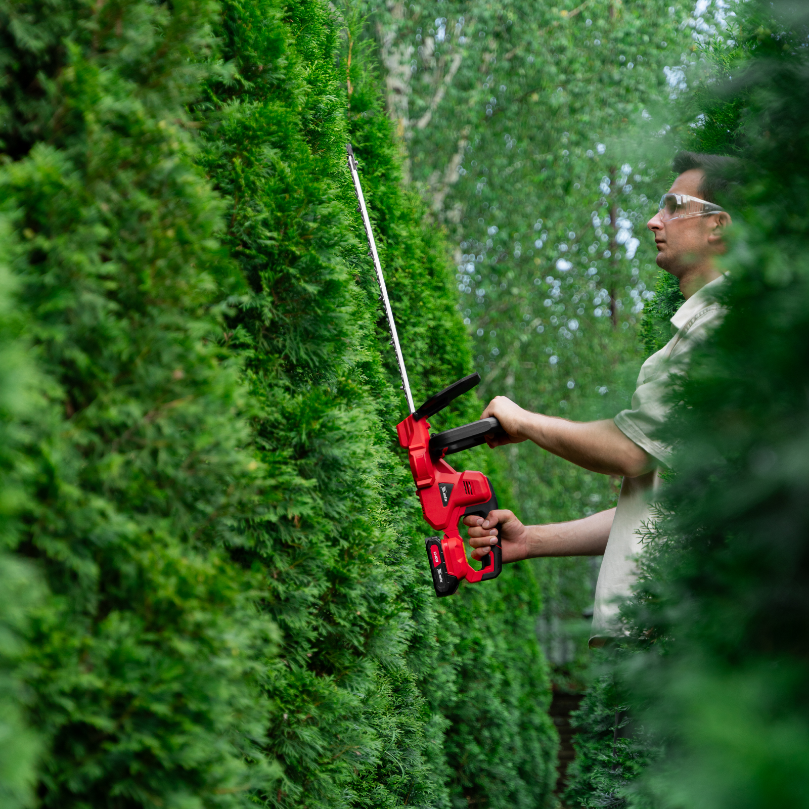 - Продуманное хранение и транспортировка — кусторез поставляется с защитным кожухом для режущего полотна.