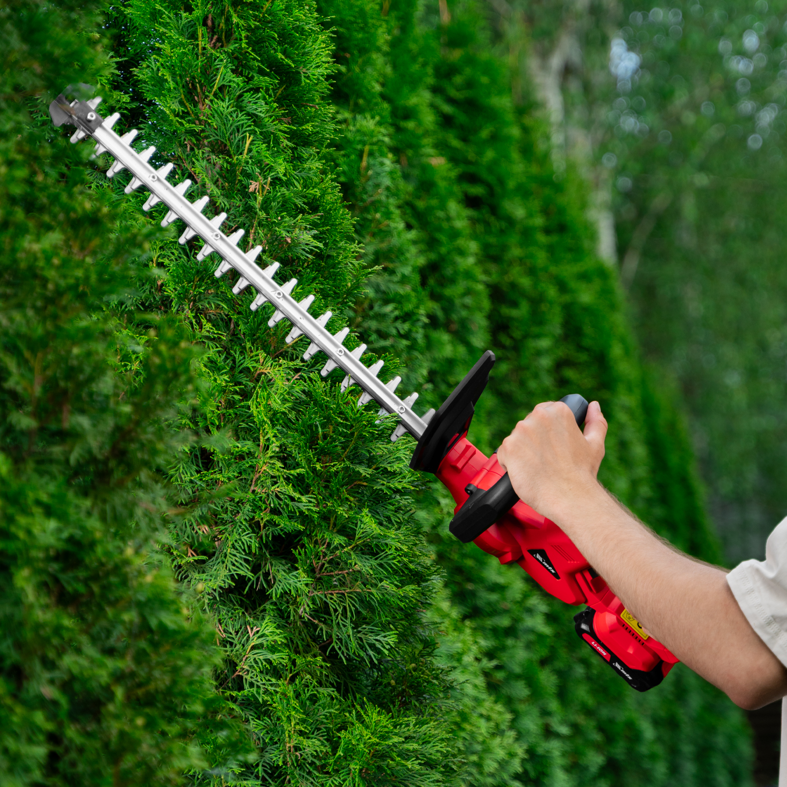 Аккумуляторный кусторез MTX HT-510 59441 с ножом длиной 510 мм предназначен для стрижки кустарника и обрезки веток толщиной до 16 мм. Частота хода лезвий составляет 1400 ход/мин, что позволяет эффективно решать поставленные задачи. Аккумулятор Li-Ion 20 В емкостью 2 А·ч допускает подзарядку без потери емкости и обеспечивает длительную работу. Кусторез пригодится для выполнения работ в саду и на дачном участке.