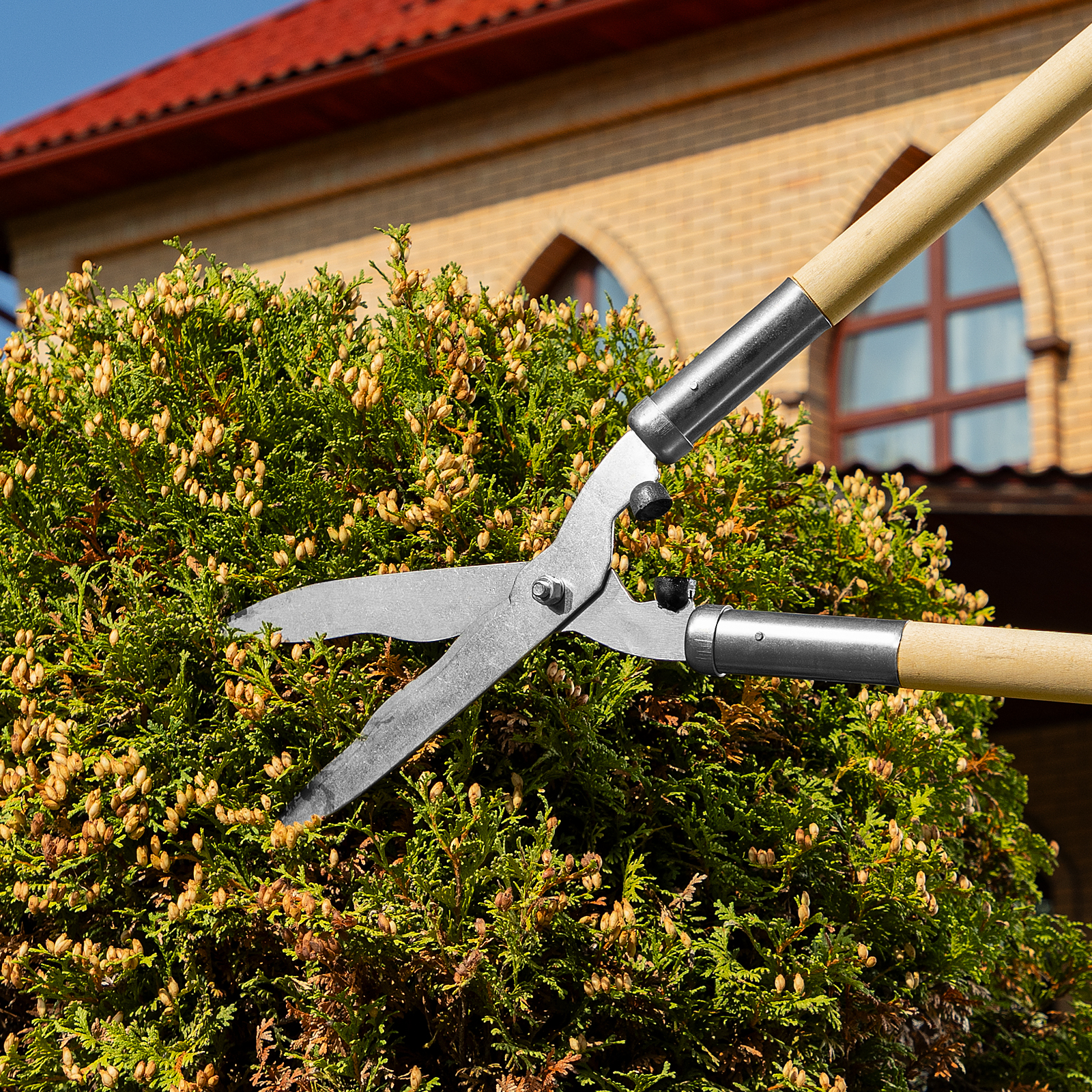 Кусторез Palisad 60810 длиной 650 мм, с волнистыми лезвиями и деревянными рукоятками, легко справляется с обрезкой молодых веток диаметром до 10 мм. Волнистые лезвия оптимальны для срезания веток с гладкой корой. Кусторез позволяет поддерживать кустарники и живые изгороди в аккуратном виде, будет полезен садоводам.