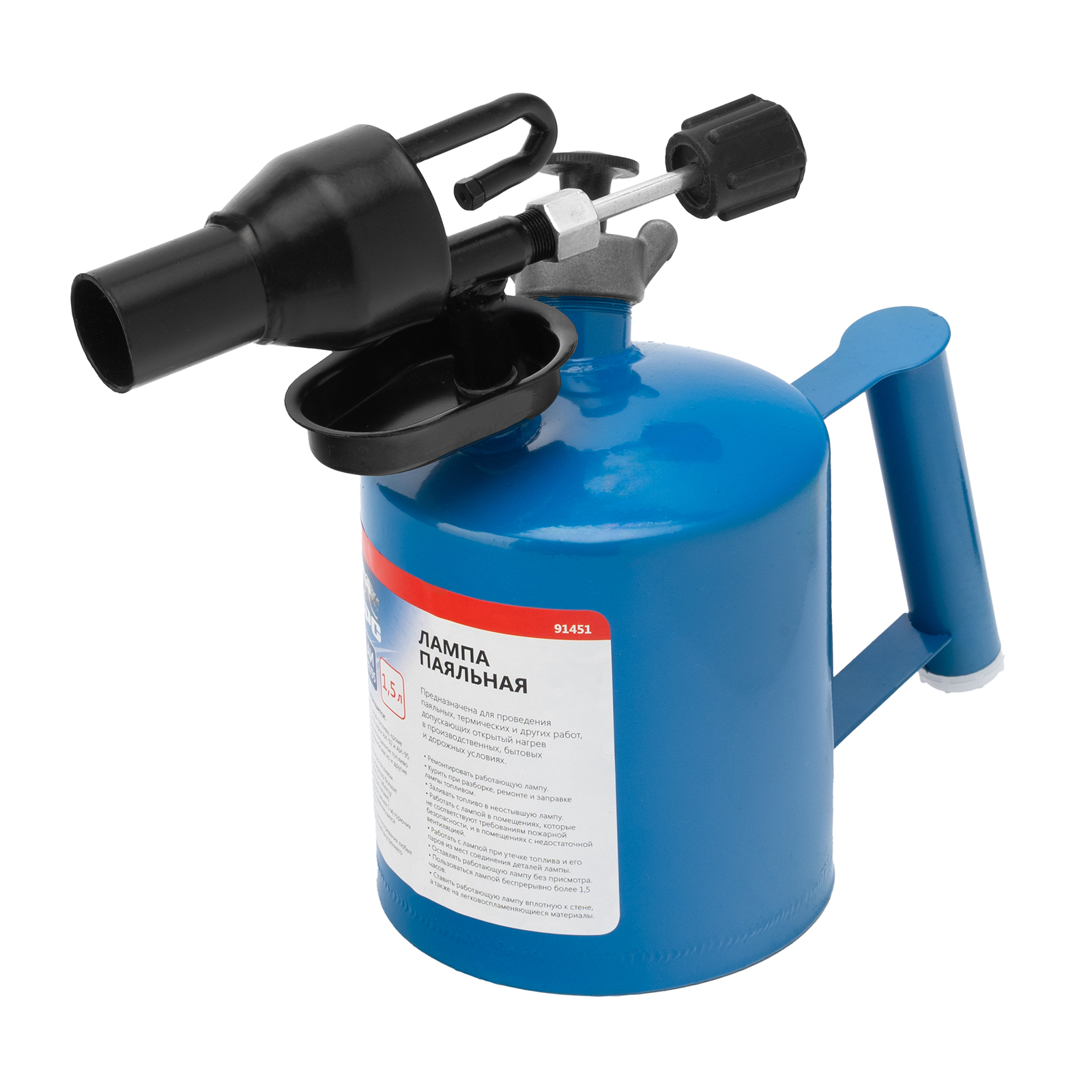 Паяльная лампа Барс 91451 с объемом бака 1,5 л предназначена для нагрева поверхностей при помощи открытого направленного пламени. Полной заправки 1,1 л топлива хватает почти на час работы при расходе 1,2 л/ч. Устройство используется для выполнения ремонтных и демонтажных работ — для пайки, термообработки деталей, установки термоусадочных трубок, снятия лакокрасочного покрытия. Также лампа будет полезна в сельском хозяйстве и в быту.
