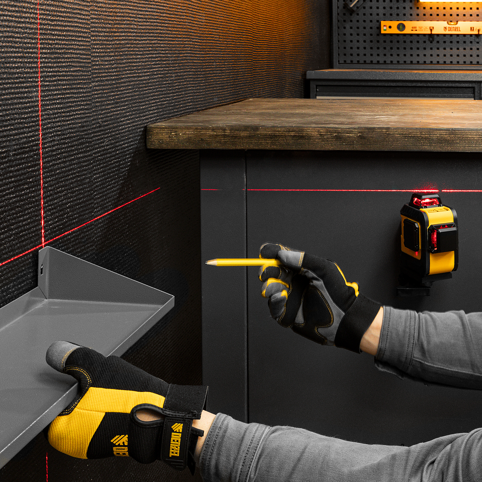- Оповещение о превышении угла наклона — в случае отклонения уровня более чем на 4° по горизонтали лазерные лучи начинают мигать.