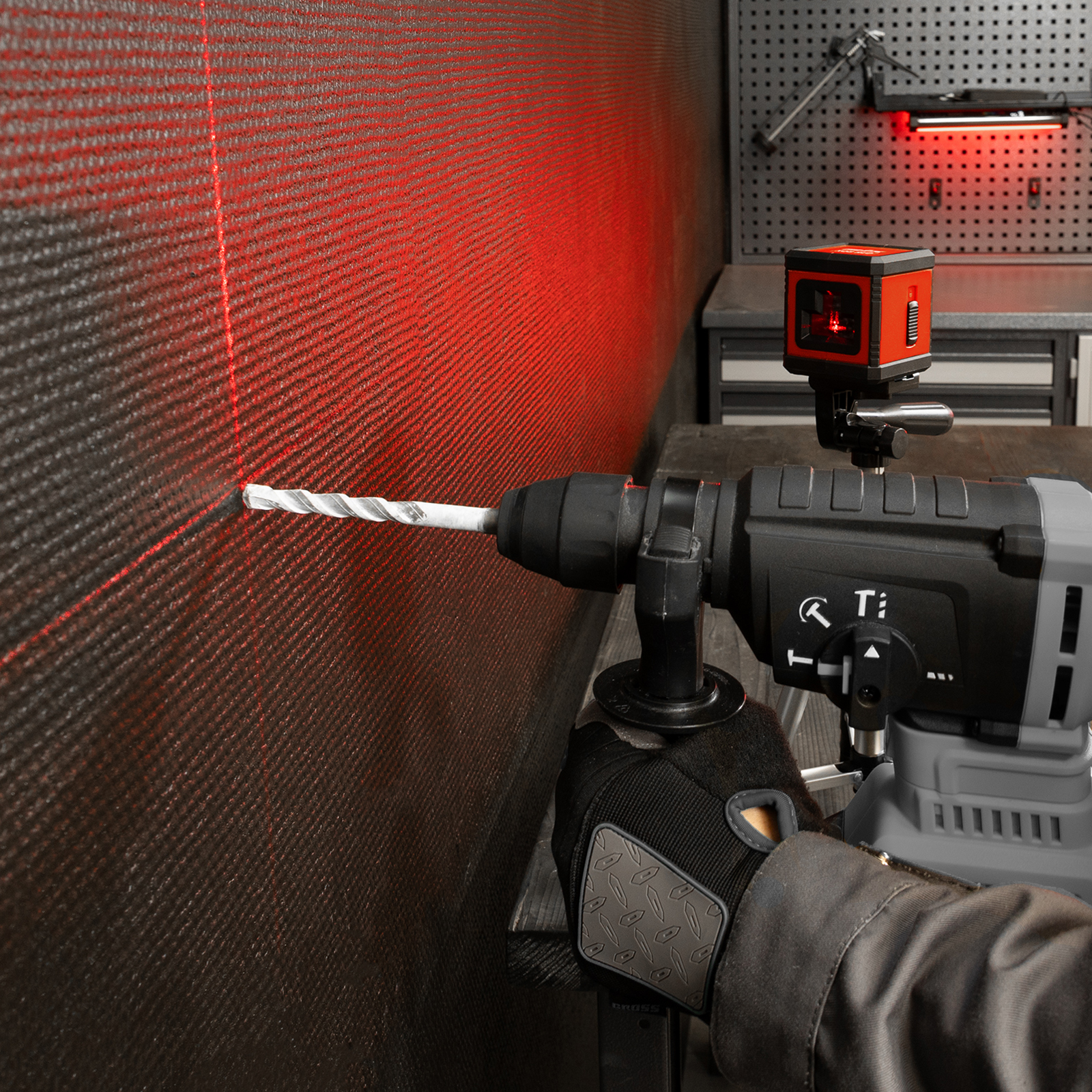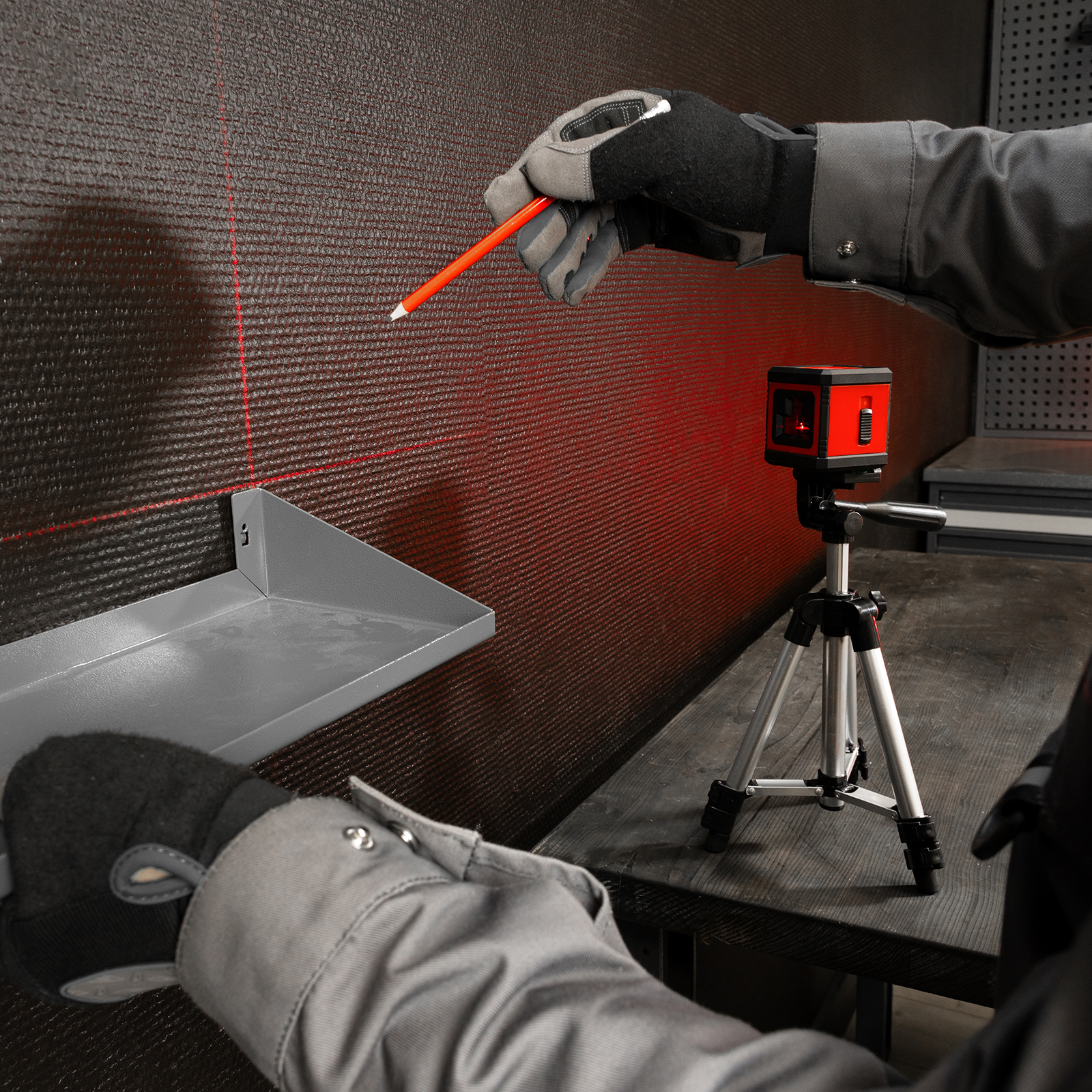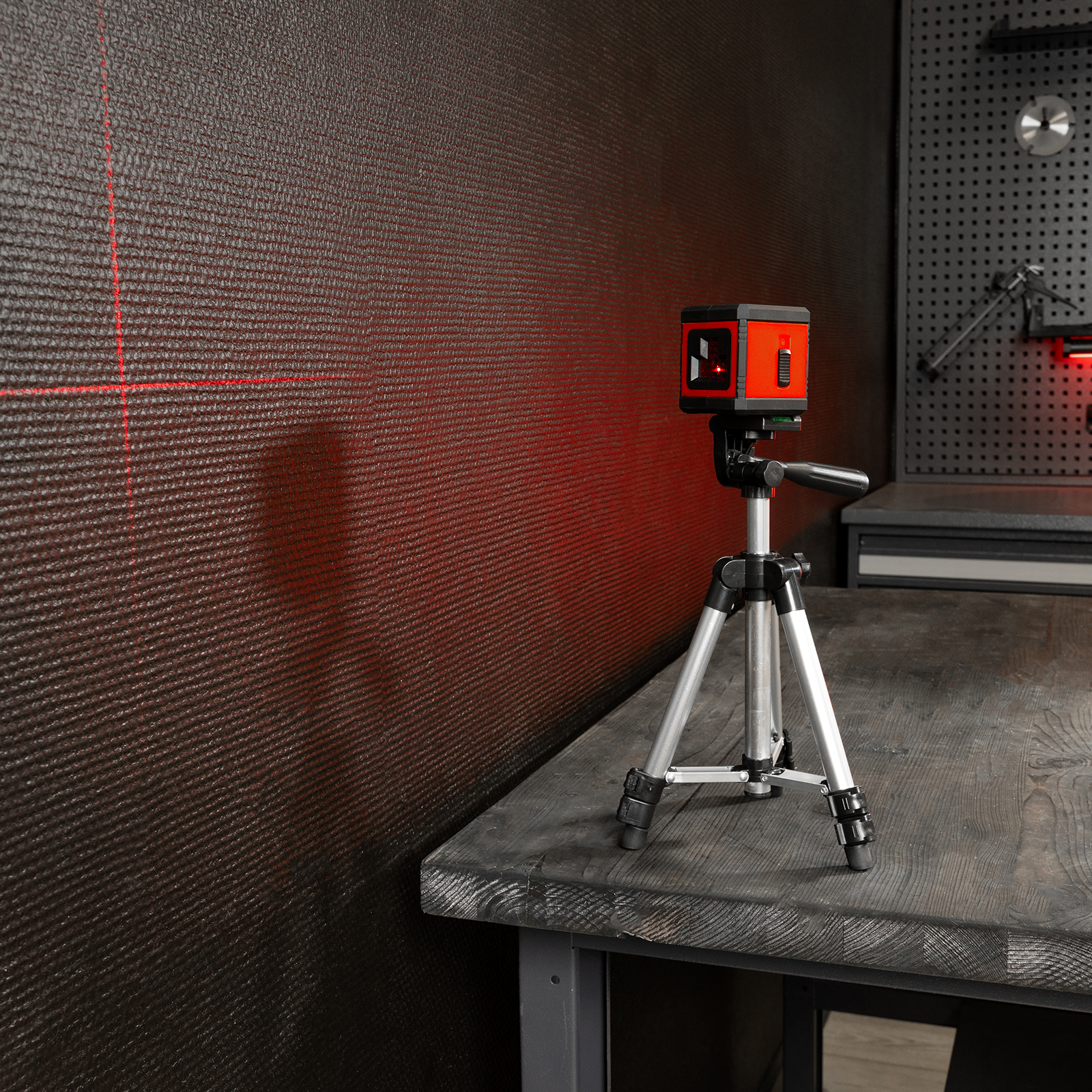 - Надежность и долговечность — корпус дополнен специальными прорезиненными гранями, демпфирующими при падении лазерного уровня.