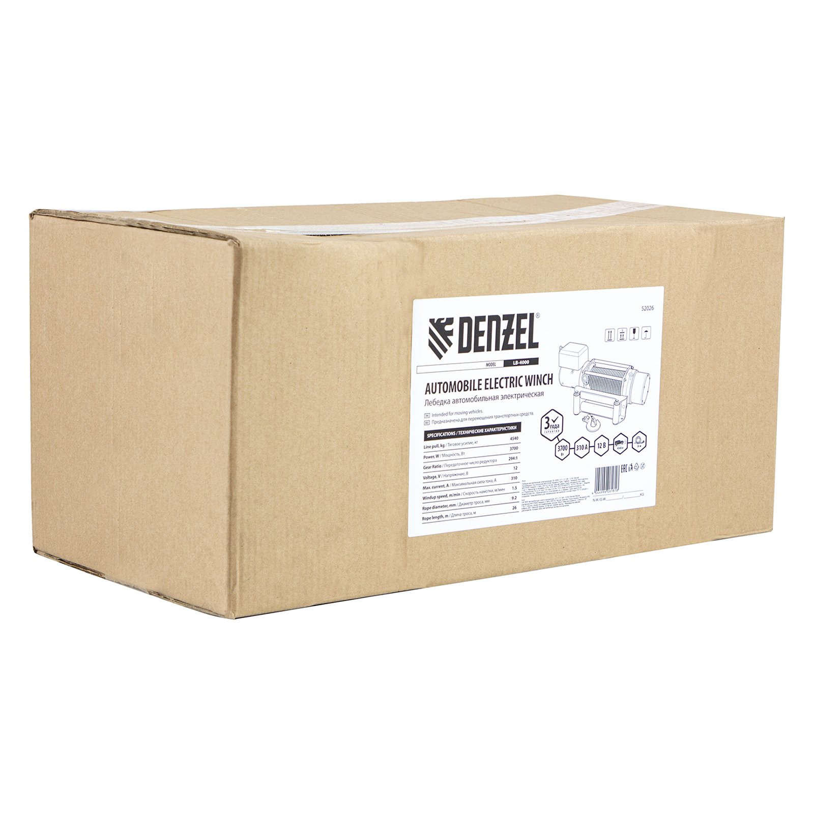 Лебедка автомобильная электрическая LB-4000, 4.5 т, 3.7 кВт, 12 В Denzel в Челябинске