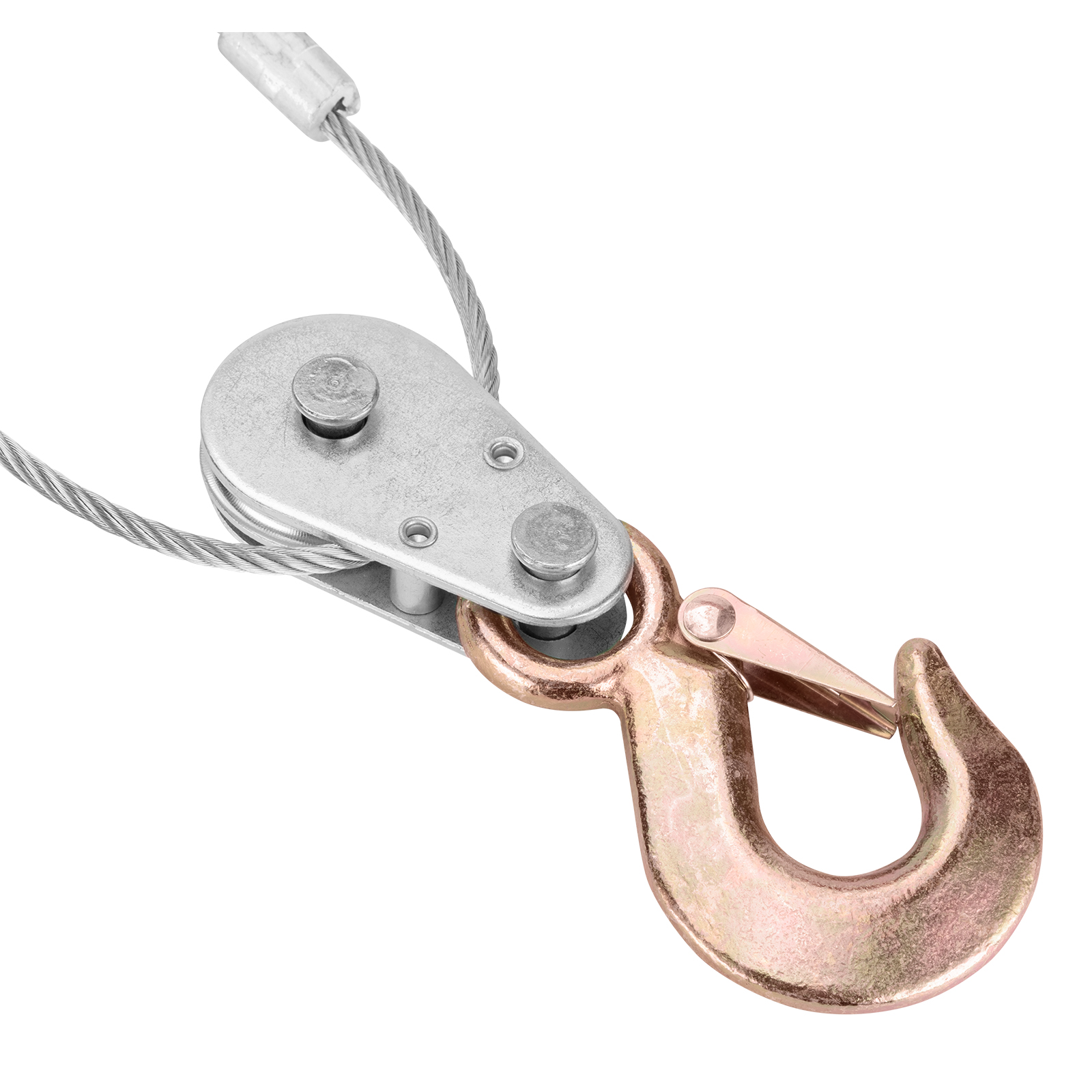 - Безопасная работа — прочный стальной трос диаметром 4,8 мм не рвется под нагрузкой (при соблюдении условий эксплуатации), а стопорный механизм не допускает падения груза.