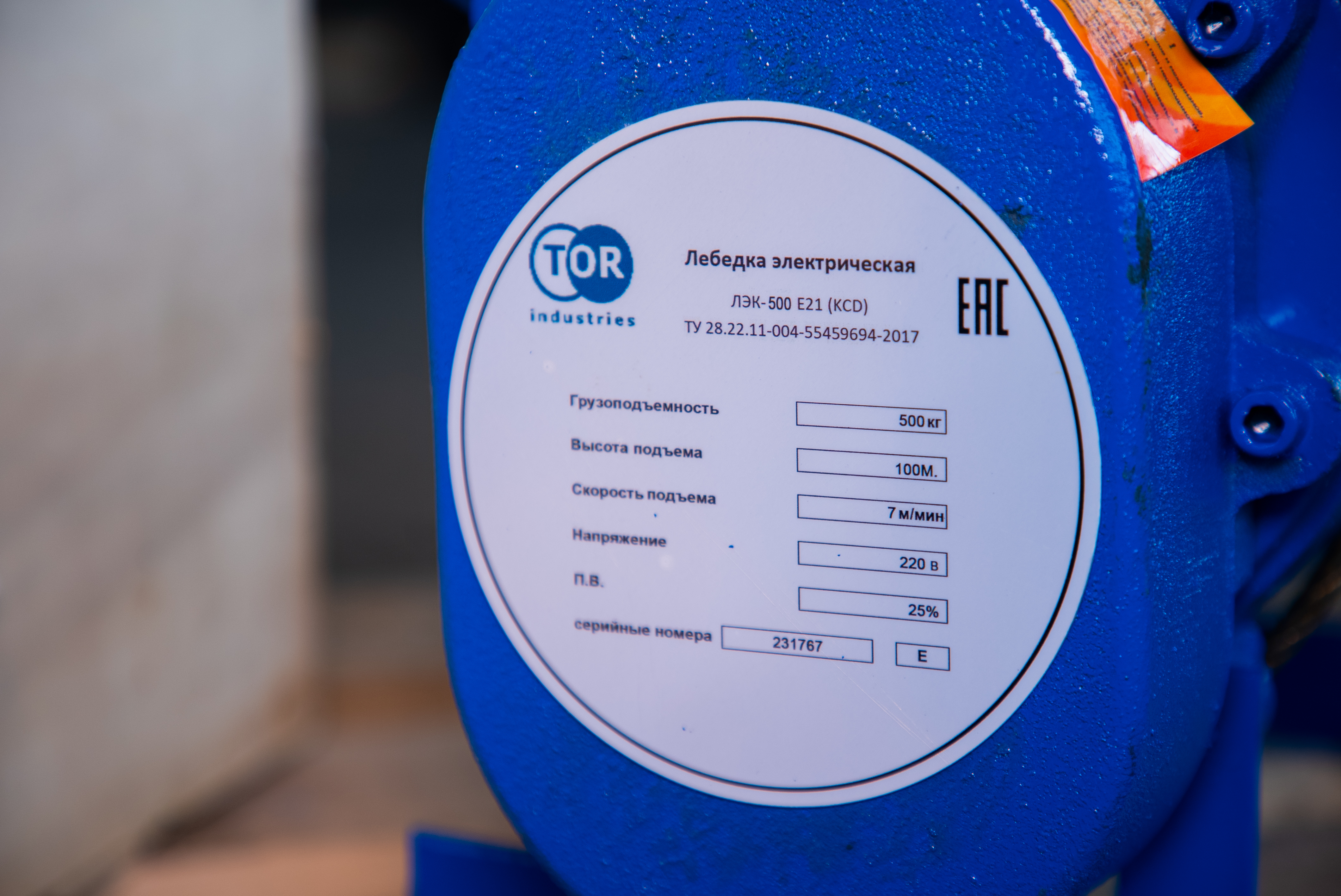 Лебедка электрическая 500 кг 100 м с канатом 220 В TOR KCD в Челябинске