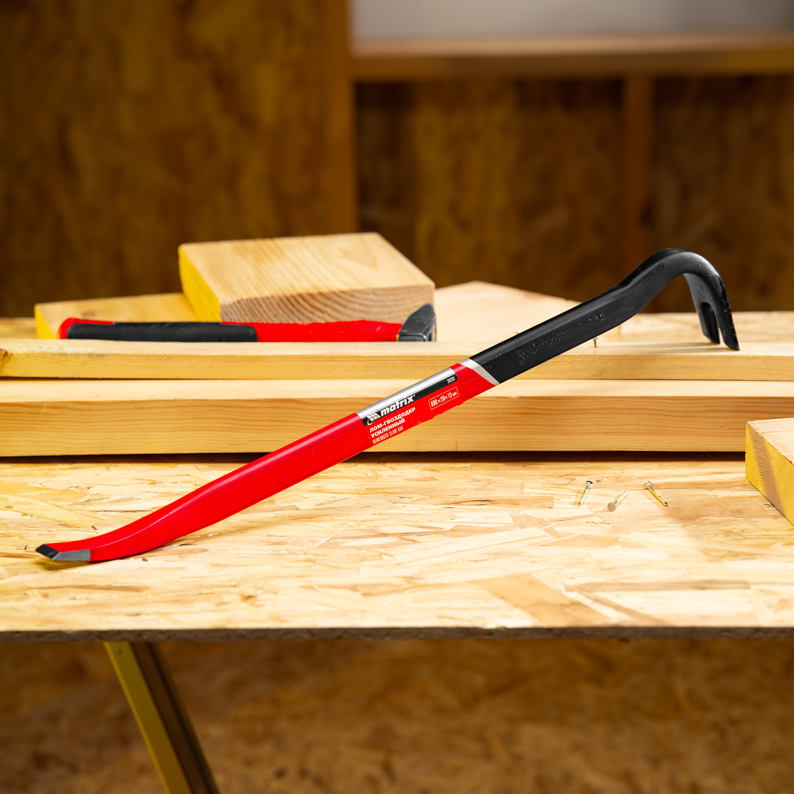 Усиленный лом-гвоздодер Matrix 25233 размером 600 х 29 х 15 мм предназначен для демонтажа различных конструкций. Им можно извлекать гвозди, разбирать ограждения и деревянную тару, демонтировать старую обшивку стен или крыши. Тело инструмента имеет овальную форму, поэтому выдерживает повышенные нагрузки. Лом-гвоздодер необходим на строительной площадке, пригодится также и в быту.