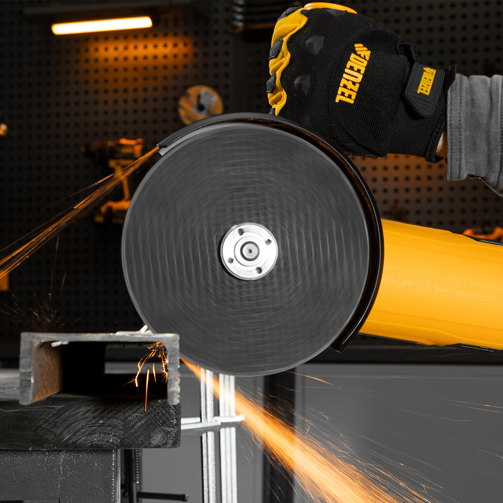- Безопасность — кнопка блокировки предотвращает случайный запуск УШМ.
