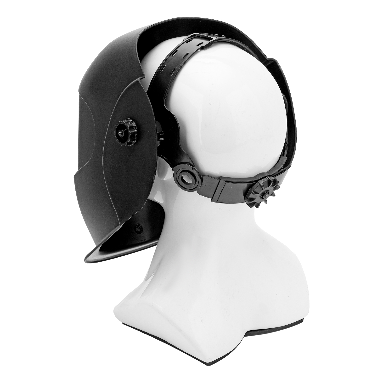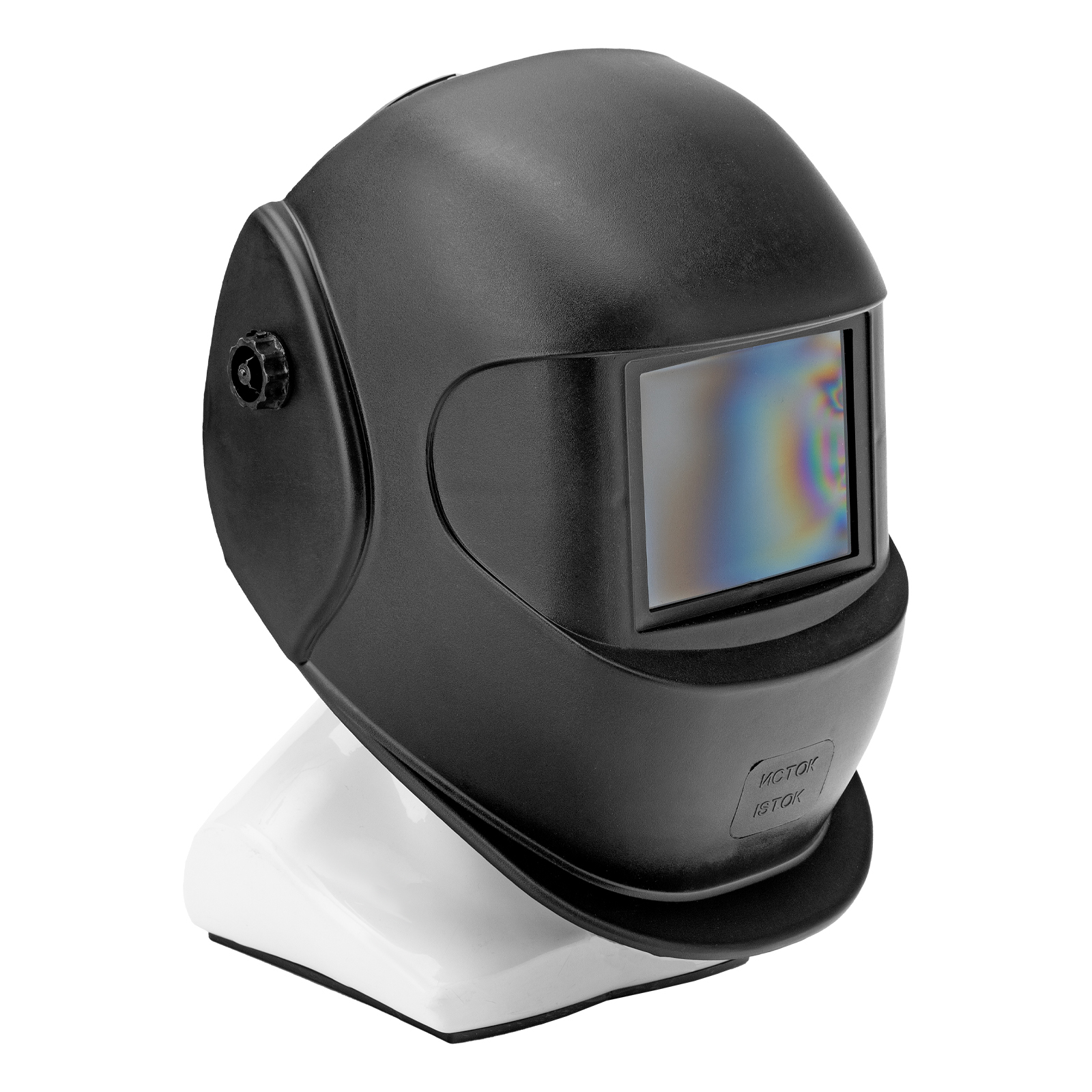 - Надежная фиксация — щиток не слетает во время работы благодаря регулируемому оголовью.