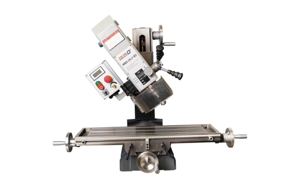 Конструкция станка METAL MASTER MMD - 25LV BD предоставляет возможность поворота головки на угол до 90 градусов, что позволяет обрабатывать взаимно перпендикулярные (или находящиеся под определенным углом) плоскости и исключить из технологического процесса часть вспомогательных операций и тем самым снизить операционное время.Крестообразный стол перемещается по направляющим типа "ласточкин хвост", регулируемые клиновыми планками. Стол имеет Т-образные пазы для монтажа на нем вспомогательных приспособлений.Передача крутящего момента от двигателя осуществляется посредством ременной передачи, что позволяет выполнять на станке выполнять операции сверления.
