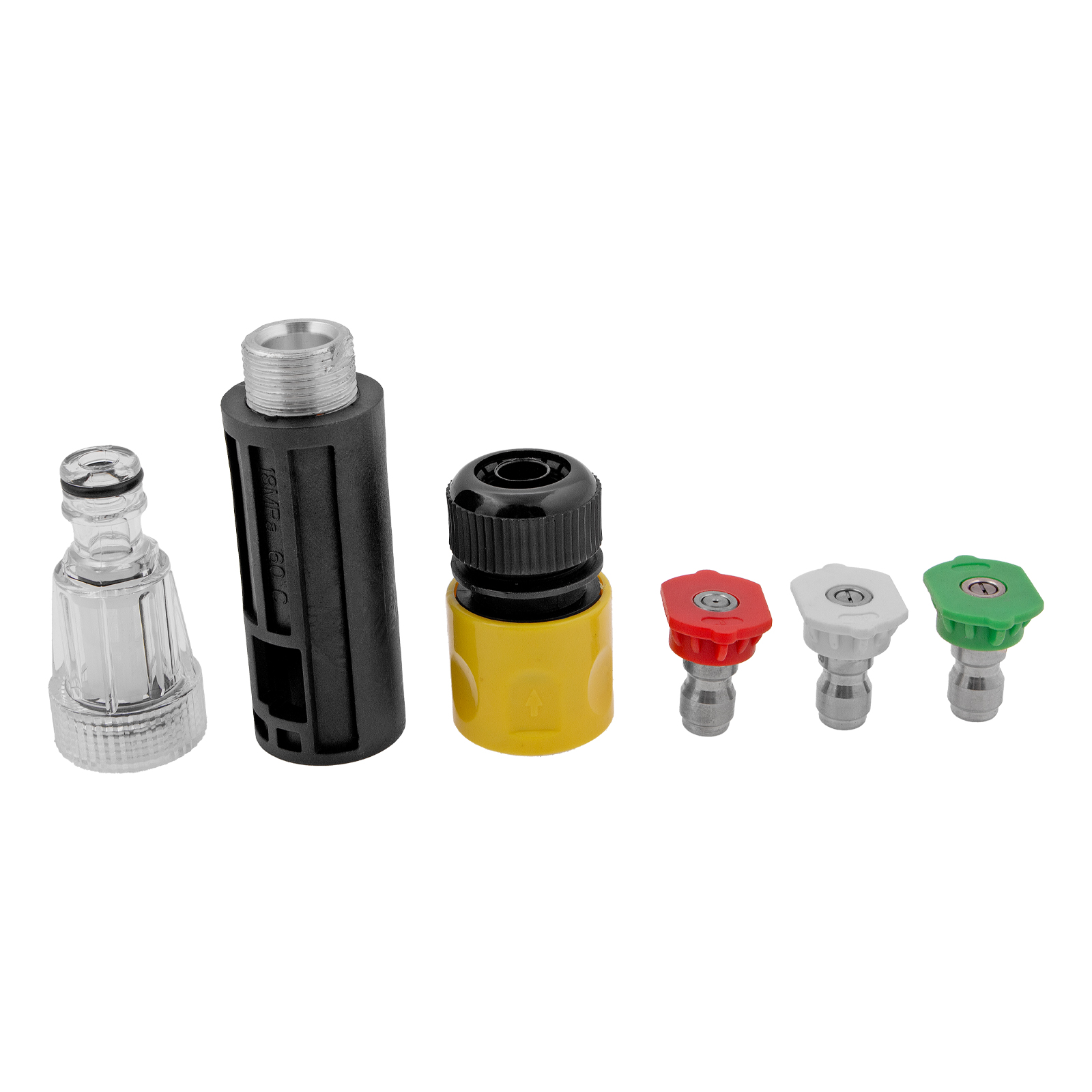 Мойка - 1 штШланг высокого давления - 1 штПистолет моечный - 1 штСтальная насадка-удлинитель - 1 штНасадки-сопла (0°, 25° и 40°) - 3 штВходной штуцер с фильтром - 1 штБыстросъемный адаптер для входного шланга - 1 штПереходник для пенокомплекта - 1 штКронштейн для кабеля - 1 штДержатель пистолета - 1 штИгла для прочистки сопла - 1 штРуководство по эксплуатации с гарантийным талоном - 1 шт |