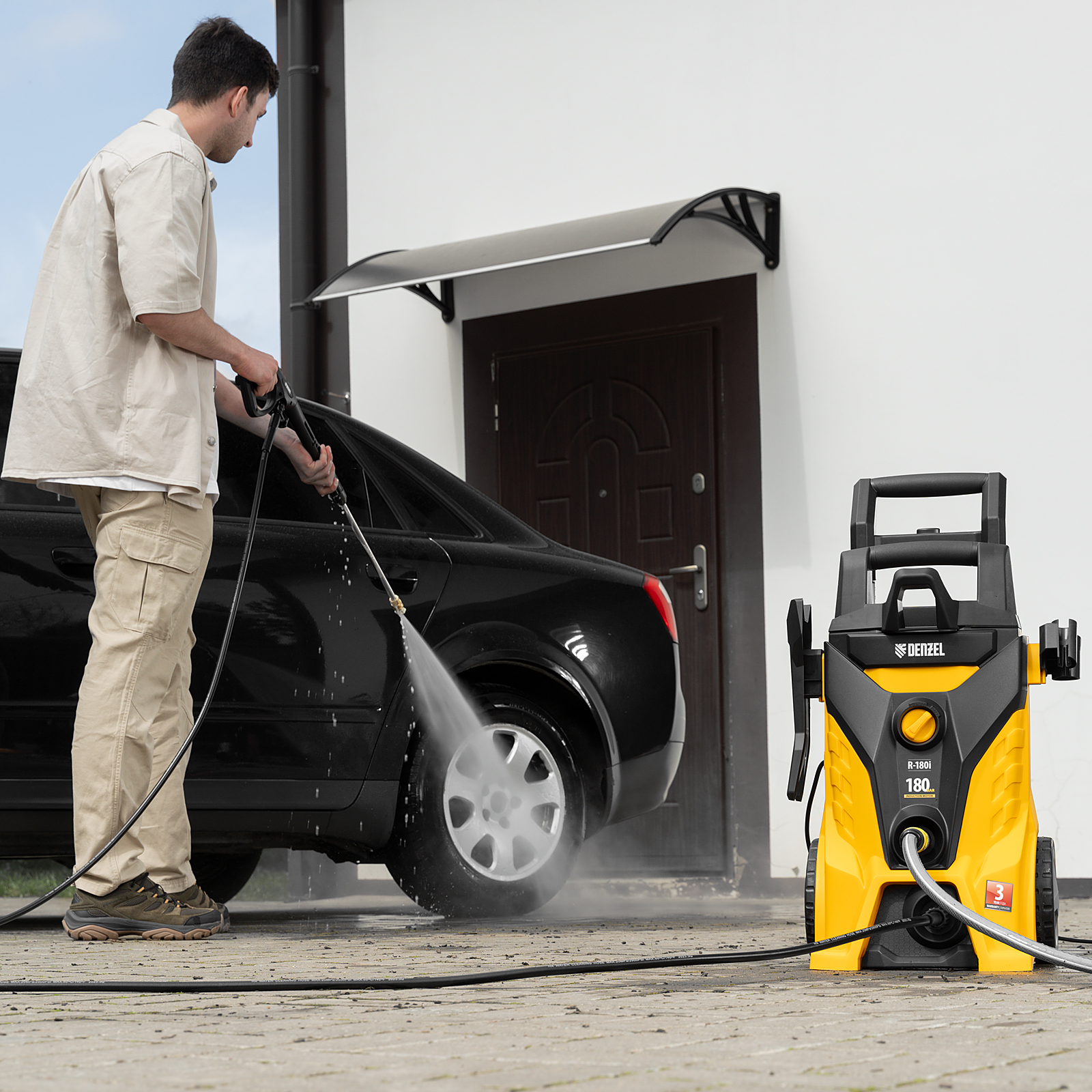 Моечная машина высокого давления Denzel R-180i с асинхронным двигателем оптимально подходит для очищения автомобилей, заборов, дорожек и садового инвентаря. Эффективно справляться с серьезными загрязнениями позволяют мощный мотор 2400 Вт и помпа с производительностью 7,5 л/мин и максимальным давлением 180 бар.,Отсутствие водопровода поблизости не станет проблемой. Мойка с насосом может производить забор воды из любых емкостей благодаря функции самовсасывания, при этом теряя не более 5% давления. Алюминиевая помпа со стальными плунжерами отличается высокой точностью подгонки деталей, что обеспечивает надежность и стабильное давление на выходе.