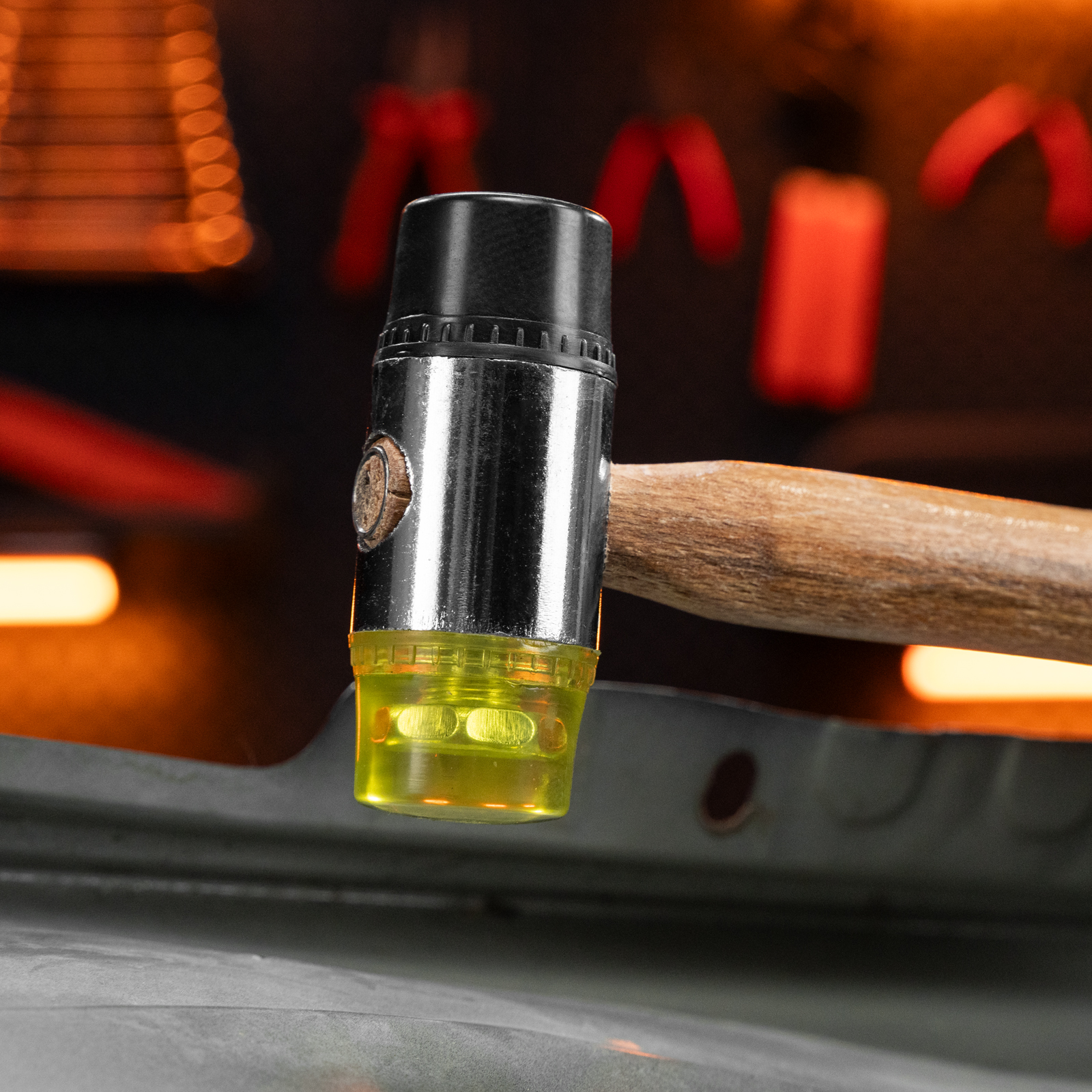 Рихтовочный молоток Sparta 108305 с бойками диаметром 35 мм, комбинированной головкой и деревянной ручкой, предназначен для выпрямления деформированного листового металла или более мягких материалов. Не повреждает поверхность при ударах. Будет полезен в слесарной мастерской, в гараже, а также дома или на даче.