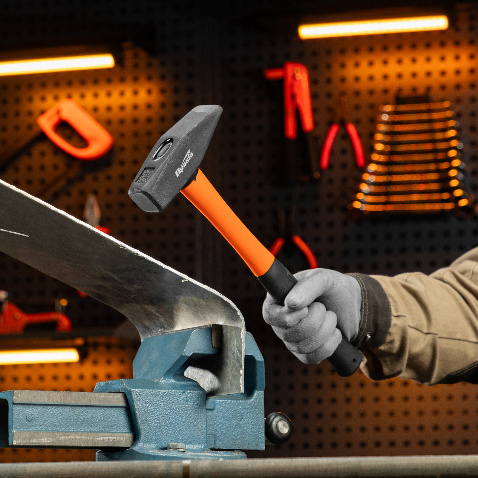 - Комфортная работа — обрезиненная фибергласовая рукоятка снижает отдачу при ударе и не выскальзывает из руки.