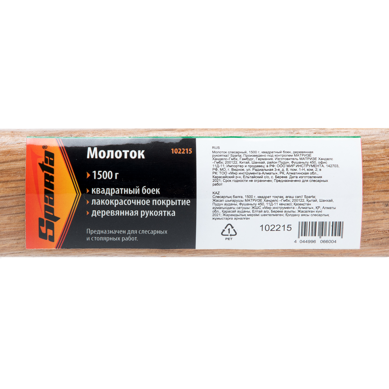 Молоток слесарный, 1500 г, квадратный боек, деревянная рукоятка Sparta в Челябинске