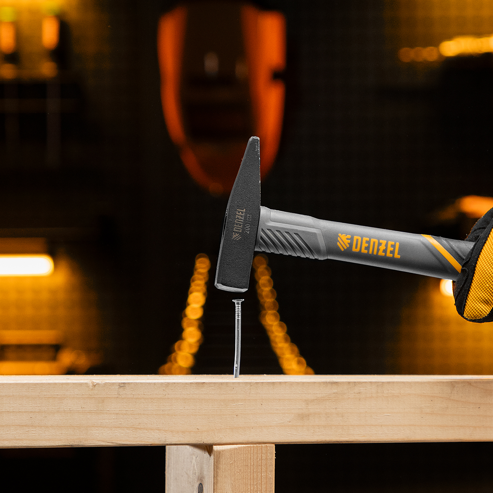 Молоток слесарный, 200 г, кованый, фибергласовая рукоятка c TPR покрытием Denzel в Челябинске
