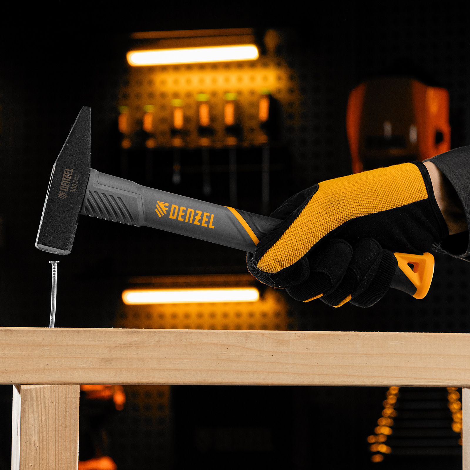 Молоток слесарный, 300 г, кованый, фибергласовая рукоятка c TPR покрытием Denzel в Челябинске