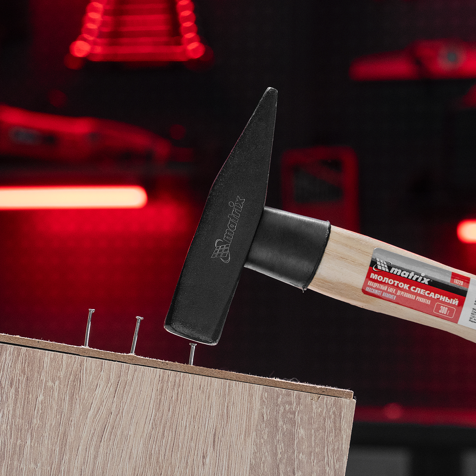 Молоток слесарный, 300 г, квадратный боек, деревянная рукоятка Matrix в Челябинске