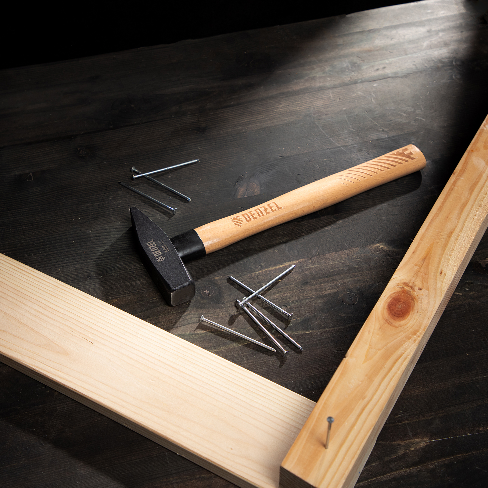 Молоток слесарный, 600 г, кованый квадратный боек, буковая рукоятка Denzel в Челябинске